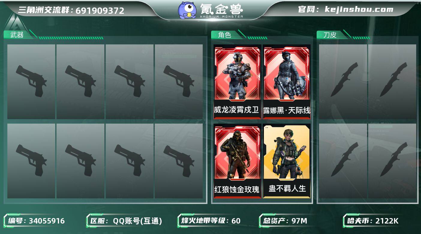 【SJZD4152】总资产97M/哈夫币212万/战场等级50/行动等级60/安全箱等时效性道具以游戏内数据为准,详情请看图/红狼-蚀金玫瑰/红狼-电锯惊魂/威龙-凌霄戍卫/威龙-飞虎/蜂医-送葬人·无题密令(S5)/蛊-不羁人生/深蓝-不破誓约(S6)/露娜-黑·天际线/近战-处刑者2级