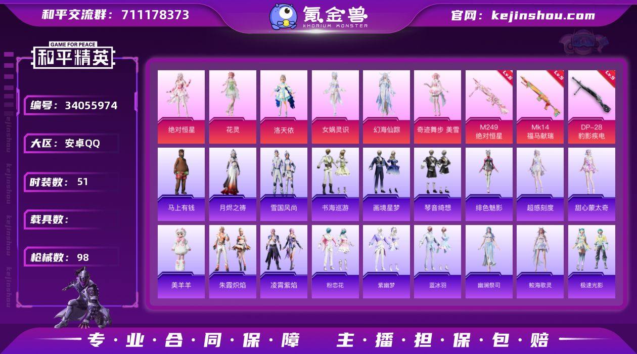 【LHPX2802】精品小号【特价出售/店主推荐--热门套装洛天依】安卓手Q-6粉装-3特效枪-4粉色飞行器-25440热力值-51套装-98枪皮【粉色套装】:角色-绝对恒星,角色-洛天依,角色-女娲灵识,角色-幻海仙踪,角色-奇迹舞步 美雪,角色-花灵【粉色枪皮等级】:Mk14-福马献瑞(五级),M249-绝对恒星(六级),DP-28-豹影疾电(五级)【粉色枪皮】:Mk14-福马献瑞,M249-绝对恒星,DP-28-豹影疾电【粉色飞行器】:绝对恒星飞行器,炫彩糖果飞行器,幻海仙踪飞行器,幻星舰长飞行器