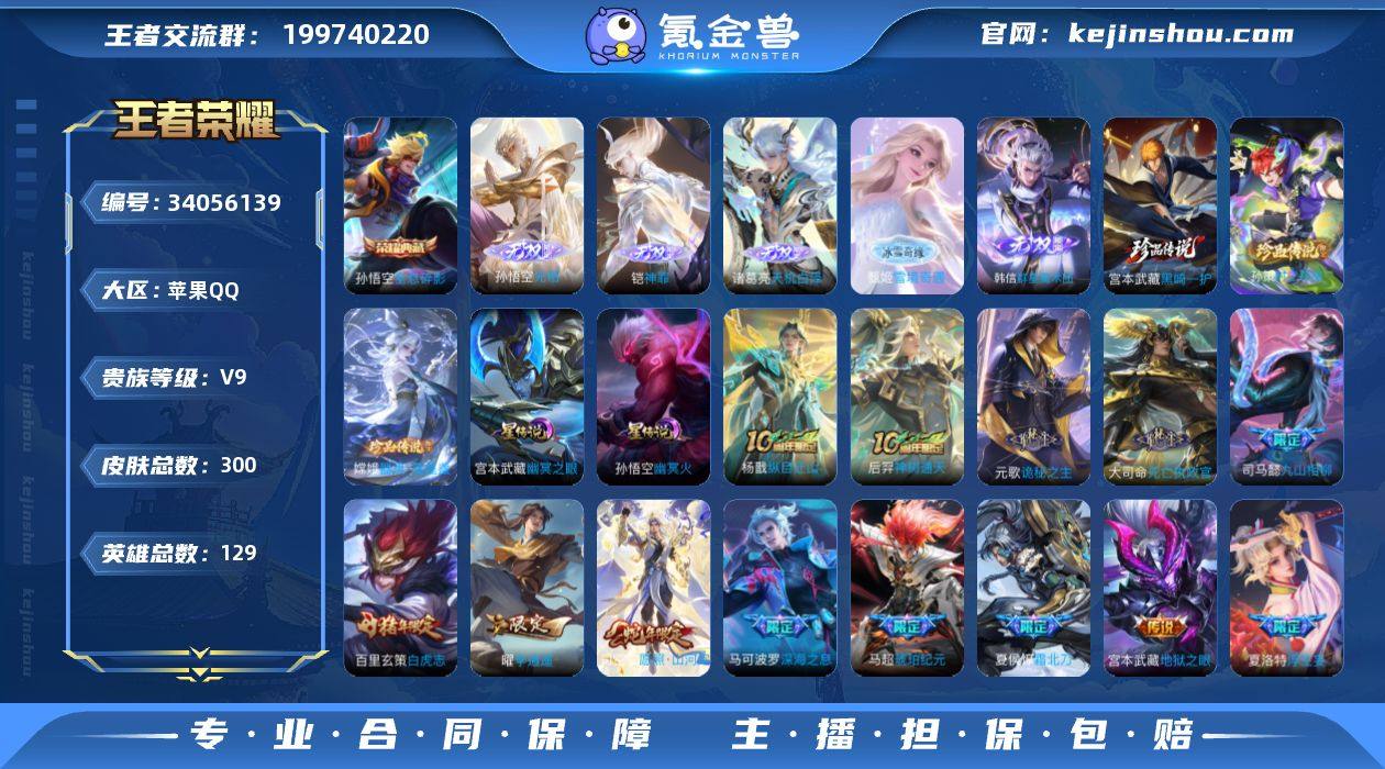 【c4511】苹果Q-V9【特价出售,永久包赔】猴子无双!铠无双!诸葛亮无双!韩信无双!打野33段!猴子典藏!李逍遥!白虎志!嫦娥传说!孙策传说!孙悟空地狱火!21按键!3201星币!-最强王者段位-129英雄-300皮肤-1典藏皮肤-5无双-3珍品传说-25传说-80史诗 【英雄全皮】:元歌全皮,孙权全皮,百里守约全皮,空空儿全皮,影全皮 【荣耀典藏】:孙悟空全息碎影 【无双皮肤】:孙悟空无相,铠神罪,诸葛亮天机白泽,甄姬雪境奇遇,韩信群星魔术团 【珍品传说】:宫本武藏黑崎一护,嫦娥器灵落星盏,孙策时之奇旅 【传说皮肤】:杨戬纵目迁山,后羿神树通天,元歌诡秘之主,大司命死亡执政官,司马懿九山相柳,司空震愿照山河定,云缨幻光神枪,嬴政玄雷天君,夏侯惇霜北刀,马超琥珀纪元,夏洛特浮生妄,百里守约碎云,马可波罗深海之息,马超无双飞将,赵云淬星耀世,王昭君乞巧织情,西施游龙清影,曜李逍遥 ,虞姬启明星使,李信一念神魔,达摩黄金狮子座,百里玄策白虎志,孙尚香末日机甲,宫本武藏地狱之眼,孙悟空地狱火 【限定皮肤】:白起狰,夏侯惇霜北刀,狄仁杰阴阳师,赵云皇家上将,嬴政白昼王子,高渐离死亡摇滚,高渐离玩趣恶龙,阿轲迷踪丽影,钟无艳王者之锤,...