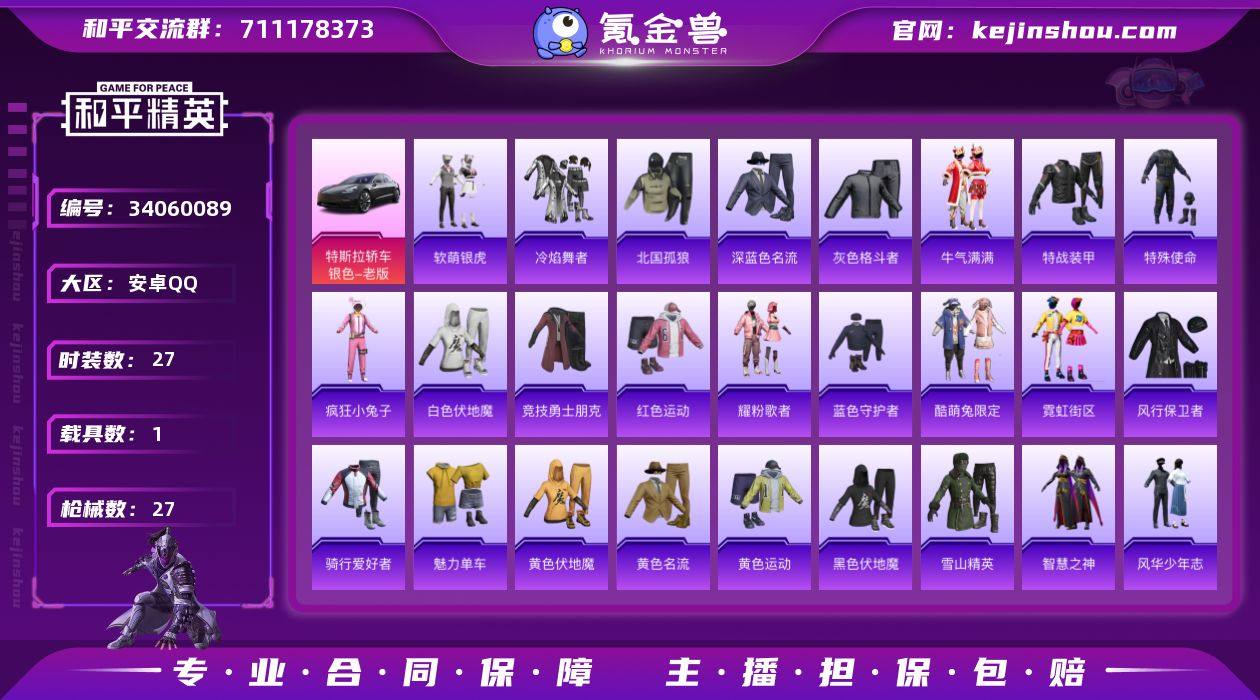 27套装/装备39/载具1/战备39/热力值10200/特斯拉Model 3(冷光银)/神秘黑猫降落伞/AKM-玉龙/M16A4-生命誓言/M416-夜灯/M416-红色方程式/M762-深海曼妙/G36C-不夜海上花/UZI-众神之王/UZI-古堡领主/UZI-生命誓言/Vector-彩虹符号/Vector-生命誓言/MP5K-众神之王/Kar98K-古堡领主/M24-众神之王/Mini14-炫彩节奏/SLR-众神之王/QBU-不夜海上花/S686-红色方程式/冷焰舞者/北国孤狼/深蓝色名流/灰色格斗者/牛气满满/特战装甲/特殊使命/疯狂小兔子/白色伏地魔/竞技勇士朋克/红色运动/耀粉歌者/蓝色守护者/酷萌兔限定/霓虹街区/风行保卫者/骑行爱好者/魅力单车/黄色伏地魔/黄色名流/黄色运动/黑色伏地魔/雪山精英/智慧之神/软萌银虎/风华少年志/红酒骑士/幻影战神背包(3级)/神秘黑猫背包(3级)/古堡领主背包(2级)/古堡领主背包(1级)
