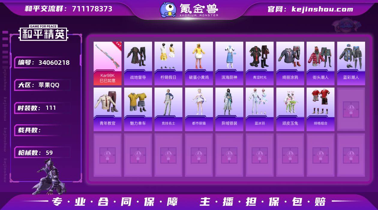 XQ1324+【1粉装 2特效枪 羊梦糖心 都市丽猫 3飞行器 无二次】苹果Q区-1粉装-2特效枪-15455热力值-3王牌印记-39套装-59枪皮【优质套装】: 羊梦糖心【特效枪等级】:Kar98K-巳巳如意(二级- Kar98K-巳巳如意)【优质武器皮肤】: Kar98K-巳巳如意【稀有武器皮肤】: Kar98K-巳巳如意 PKM-紫幽梦 Mk14-紫幽梦 蜜獾-乌木金纹 S1897-紫幽梦 P92-紫幽梦 M416-红色方程式 AKM-破晓战魂 SCAR-L-炫彩节奏 AUG-耀粉歌者 SKS-炫彩节奏 UZI-红色方程式 UMP45-蓝色火焰 汤姆逊-耀粉歌者 汤姆逊-天降萌叽 M249-彩虹符号 平底锅-绝色倾城 AUG-异域银装 十字弩-异域银装 P90-巳巳如意【其他套装】: 蓝冰羽 羊梦糖心 异域银装 都市丽猫 战术大师 青年教官 顽皮玉兔 绯格组合 竞技名士 街头潮人 魅力单车 战地督导 青涩时光 破蛋小黄鸡 蓝彩潮人 绮丽涂鸦 滨海厨神 柠萌假日【优质飞行器】: 炫彩糖果飞行器 异域银装飞行器【优质降落伞】: 异瞳寒姬降落伞 喜羊羊与灰太狼降落伞 荧海星豚降落伞 时光之誓降落伞 炫彩糖果降落伞 星穹咏叹调降落伞 雪月幻音降落伞 普通降落伞 异域银装降落伞 寂夜之火降落伞