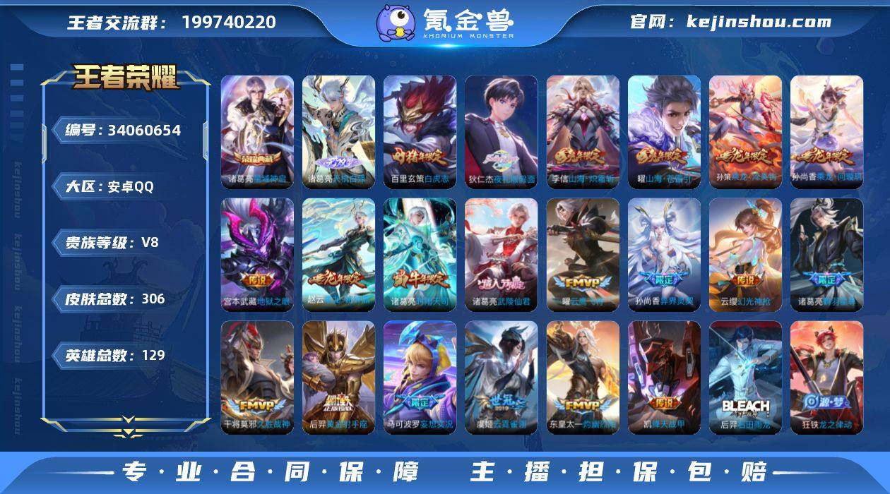 36传说 129英雄 306皮肤 可二次 可修改实名 男号 【英雄全皮】敖隐全皮,孙权全皮,蚩奼全皮,诸葛亮全皮,大禹全皮 【稀有英雄】敖隐(小龙人),大司命,嬴政(始皇帝),韩信(韩跳跳),夏洛特(夏师傅),艾琳,橘右京(橘子),娜可露露(鸟人),不知火舞,赵云,金蝉(唐僧),戈娅 【荣耀水晶】星域神启(倪克斯贼亮) 【无双皮】天机白泽 【传说皮】异界灵契-花木兰,神骥·聚万邦,神骥·镇沧海,罗刹妄海,貂蝉曦玄引,乘龙·淬吴钩(孙策年限),乘龙·铭钟鼎(赵云年限),琥珀纪元马超,乘龙·问璇玑(孙尚香年限),幻光神枪,踏浪归,纵目迁山,神树通天,山海·炽霜斩(李信年限),黄金射手座,地狱之眼,云霓雀翎,久胜战神,云鹰飞将(小将军),绛天战甲(鸡嘴战神),山海·苍雷引(电光曜子),鹤羽星尊,灼幽烈阳,妄想实况,夜礼服假面,澜逐花归海 【珍宝阁皮】妄想食味,优雅恋人,女武神 【赛季/战令皮】噬灭天穹(s37),古海寻踪(s33),海盐诗旅(s30),擒涛扼浪(s31),探海日志(s32),流音漫舞,顽趣-梦奇,地狱燃心,剑破天穹(s35),天穹祈灯(s34),天穹之誓(s36),朔风刀(s17),混沌棋(s18),疑决卦(s19),醍醐杖(s20),原初探秘者(s21),万华元夜(s22),演武夺筹(s23),驱傩正仪(s24),千军破阵(s25),圣弓游侠,真爱魔法,火炮绅士,沙漠行僧(s26),...