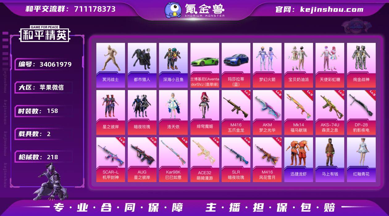 木乃伊!新101/都市/哥特/深海小丑鱼!洛天依 7级五爪金龙!苹果 微信-8粉装-11特效枪-2载具-0粉色飞行器-72995热力值-10王牌印记-158套装-218枪皮 【热门品类】:粉装-梦幻火箭,套装-浪漫天命,套装-都市猎人,套装-冥河战士,套装-深海小丑鱼,套装-小丑鱼,套装-暗影哥特,套装-粉红小猪 【粉色套装】:粉装-宝贝奶油派,粉装-天使彩虹糖,粉装-梦幻火箭,粉装-绚金战神,粉装-星之彼岸,粉装-暗夜玫瑰,角色-洛天依,角色-绯穹魔姬 【粉色枪皮等级】:AKM-梦之光华(六级),SCAR-L-机甲封神(五级),M416-五爪金龙(七级),M416-风花雪月(一级),AUG-星之彼岸(五级),ACE32-萌骑漫游(四级),AKS-74U-森灵之息(五级),Kar98K-巳巳如意(五级),Mk14-福马献瑞(五级),SLR-暗夜玫瑰(四级),DP-28-豹影疾电(五级) 【粉色载具】:兰博基尼Aventador SVJ(翡翠绿),玛莎拉蒂Ghibli(蓝) 【粉色枪皮】:AKM-梦之光华,SCAR-L-机甲封神,M416-五爪金龙,M416-风花雪月,AUG-星之彼岸,ACE32-萌骑漫游,AKS-74U-森灵之息,Kar98K-巳巳如意,Mk14-福马献瑞,SLR-暗夜玫瑰,DP-28-豹影疾电 【粉色降落伞】:深海曼妙降落伞,极限特训降落伞,甜心宝贝降落伞,星之彼岸降落伞,葫芦兄弟...