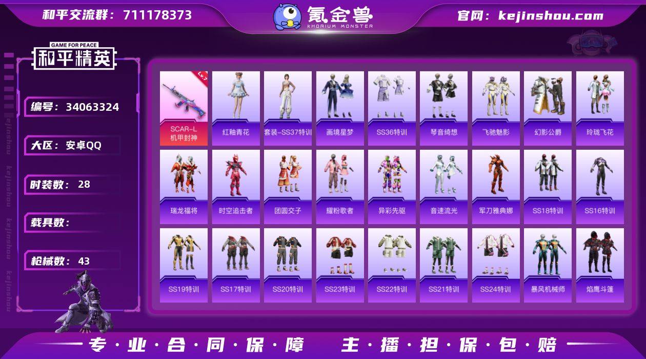 地铁满天赋 2w2热力值精品小号 满级机甲死噶 【和平精英】0粉装,3特效枪,0载具,历史最高段位:超级王牌5星 王牌印记2次 热力值:22589,50套装,81枪械,59装备,38战备;套装:套装-深海格斗者,套装-竞技名士,套装-长空猛禽,套装-蓝色守护者,套装-旭日情侣,套装-滨海假日,套装-鹰眼刺客,套装-神秘领域,套装-耀眼新星,套装-都市漫游者,套装-风行保卫者,套装-幻世战舞者,套装-幻影公爵,套装-麻辣教官,套装-玲珑飞花,套装-鹤鸣,套装-夏日音浪,套装-狙击之神,套装-SS18特训,套装-耀粉歌者,套装-迅捷龙虾,套装-SS16特训,套装-暴风机械师,套装-时空追击者,套装-SS17特训,套装-瑞龙福将,套装-团圆交子,套装-虎虎生威吉莉,角色-军刀雅典娜,套装-异彩先驱,套装-霓虹极客,套装-空投萌叽,套装-SS19特训,套装-飞驰魅影,套装-音速流光,套装-炫蓝之夏,套装-SS20特训,套装-SS21特训,套装-SS22特训,套装-SS23特训,套装-SS24特训,套装-涂山之恋,套装-焰鹰斗篷,套装-琴音绮想,套装-画境星梦,套装-SS37特训,套装-SS36特训,套装-红釉青花,套装-雨过天青,套装-马上来财;枪皮:Mk47-百万伏特,Mk47-乌木金纹,AKM-影袭,AKM-彩虹符号,AKM-虎...