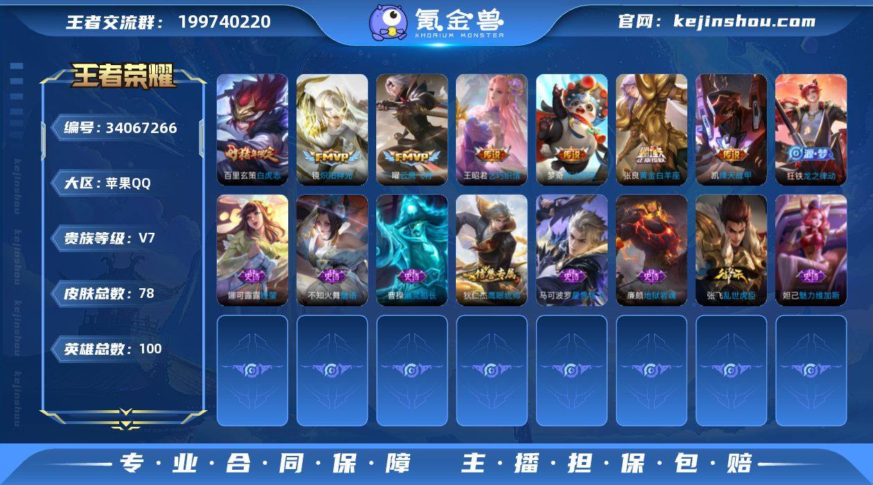V7 1无双 12传说 100英雄 78皮肤 可二次 可修改实名 男号