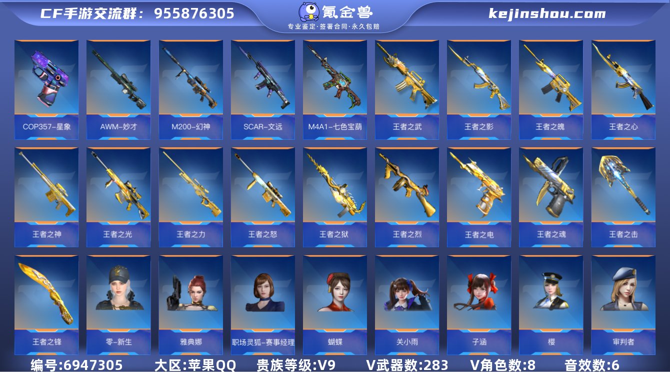 可二次实名 【可排位-可转区-钱包已删】苹果QQ-贵9-283V-收藏187武器-3至尊【/心至尊/魄至尊/怒至尊/】-26王者【王者之心/王者之影/王者之魄-燃竟之巅/王者之武-冰皮/王者之力/王者之光/王者之怒/王者之神/王者之狱/王者之烈/王者之魂-白金血钻/王者之电-冰皮/王者之锋/王者之击】【火麒麟套/雷神套/星象套/毁灭套/无影套/黑武士套/M200-幻神/AK47-游骑兵/M4A1-星象/M4A1-七色宝葫/SCAR-文远/HK417-朱雀/AWM-妙才/巴雷特-雷神/98K-星神】【沙鹰-火麒麟-寒霜/沙鹰-幻兽/GLOCK18-武圣/COP357-雷神-能量核心/COP357-星象/USP-神罚/USP-机械迷城/沙鹰-修罗-不屈老兵/沙鹰-飞电/沙鹰-无影-能量核心/气手枪-炼狱-怒魔/双持沙鹰-变色龙/消音沙鹰-牛魔王/沙鹰-明目达聪/沙鹰-神兵修罗/左轮-黑武士觉醒/蟒蛇-妙才/蟒蛇-火力竞放/改装LOCK-黑龙/QSZ92-天使/QSZ92-华夏传说/双管枪-黑骑士/双管枪-威侯】【/蝴蝶/职场灵狐-赛事经理/关小雨/樱/雅典娜/子涵/零-新生/审判者/】【加特林-炼狱-现代战场/M200-幻神-现代战场/AK47-火麒麟-现代战场/巴雷特-毁灭-现代战场/加特林-炼狱-现代战场/MK47-鼓龙-嘴炮/消灭音效-赏金猎人】详情看图★星迈游★低价出售找回包赔