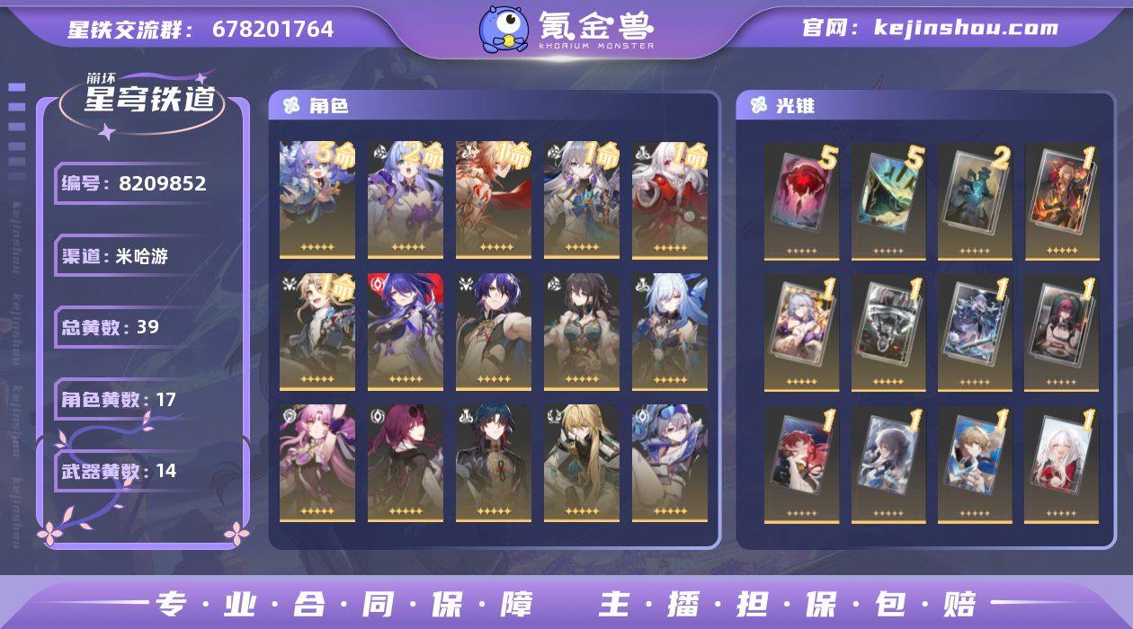总黄数: 39 3命金色角色: 3命白露 2命金色角色: 2命知更鸟 1命金色角色: 1命彦卿,1命布洛妮娅,1命克拉拉,1命万敌 0命金色角色: 0命希儿,0命杰帕德,0命银狼,0命罗刹,0命刃,0命卡芙卡,0命符玄,0命镜流,0命阮•梅,0命真理医生,0命黄泉 精5武器: 精5记一位星神的陨落,精5星海巡航 精2武器: 精2孤独的疗愈 精1武器: 精1时节不居,精1制胜的瞬间,精1但战斗还未结束,精1无可取代的东西,精1银河铁道之夜,精1只需等待,精1此身为剑,精1行于流逝的岸,精1夜色流光溢彩,精1记忆永不落幕,精1血火啊,燃烧前路