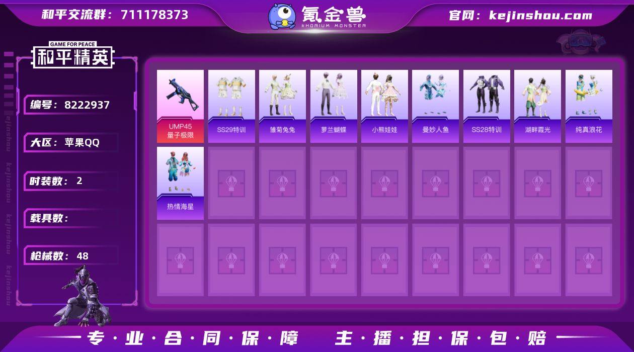 实名: 可修改 时装数: 2 枪械数: 48 稀有枪皮: UMP45量子极限