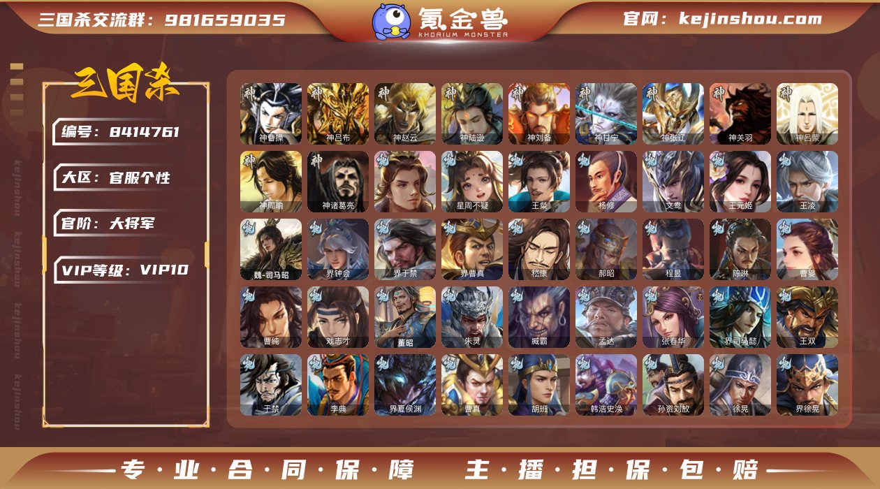 可玩性高,神曹操神甘宁等,51史实,45宝珠,13000浆糊,年前截图所以英雄少了几个,还有清河公主,友徐庶等武将,以卖家说为准。