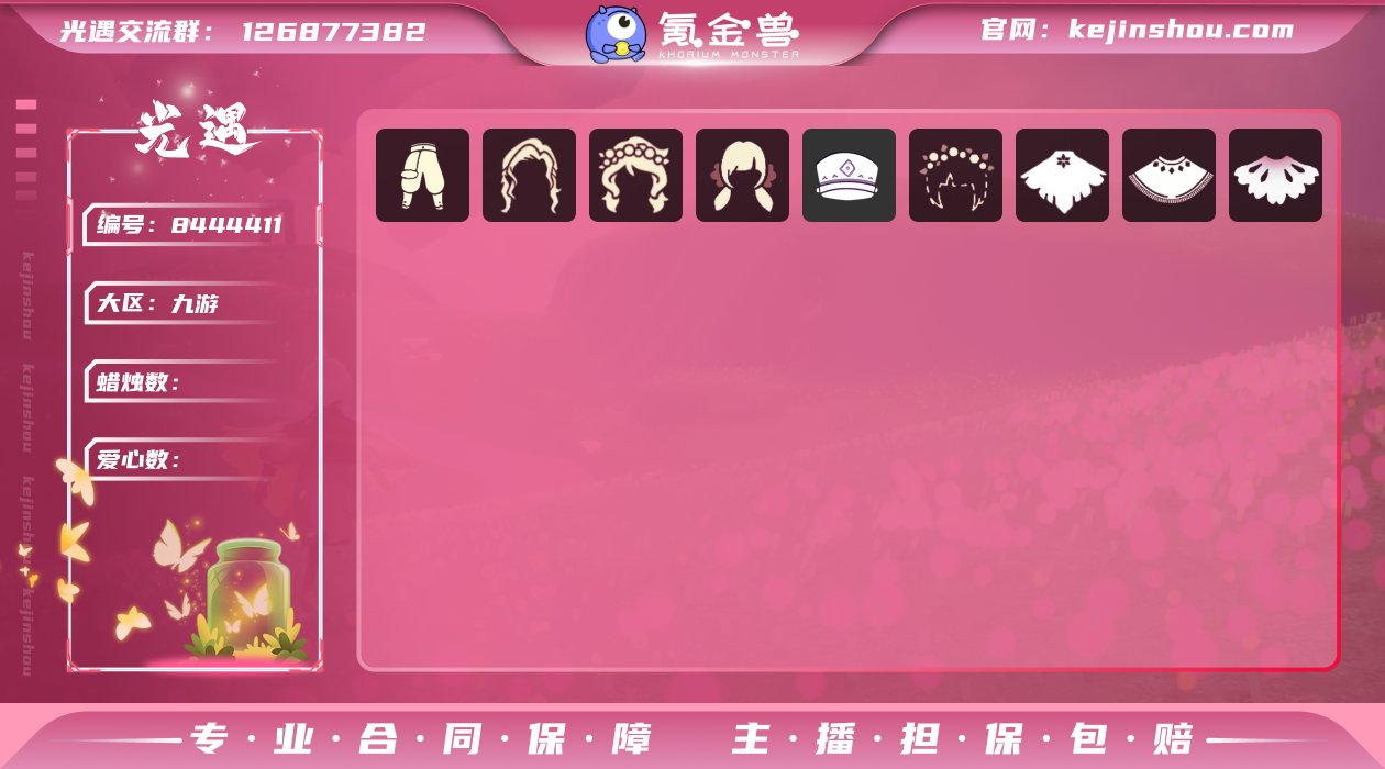 账号类型: 手机账号 裤子: 搓澡巾 发型: 花环,虚荣,樱花 斗篷: 白鸟斗,白金,樱花斗 头饰: 平顶帽,花环 亮点: 2581蜡烛先祖齐全云巢全开