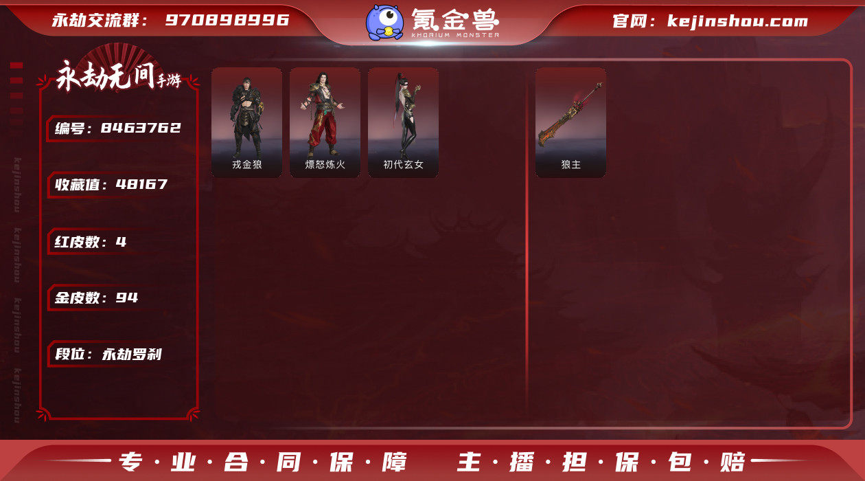 四个红皮 94个金皮 迦南4200分有市标 罗刹