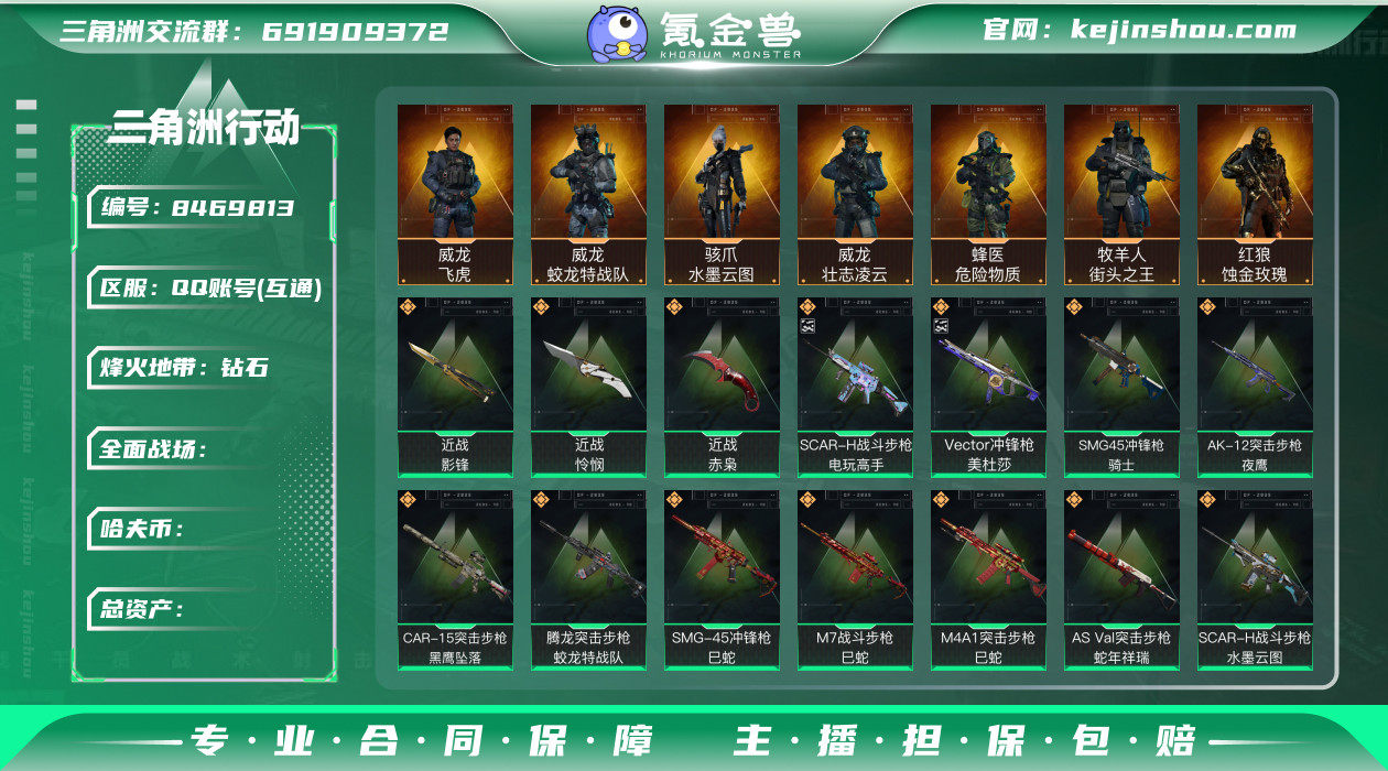 【蚀金/水墨/蛟龙/赤枭/影锋/怜悯/风潮/危险物质/白鹰/巳蛇套 电玩极品B/美杜莎优品B 绝版三刀训中6级 仓库9级 通行证已开 毁灭之源SSAS】