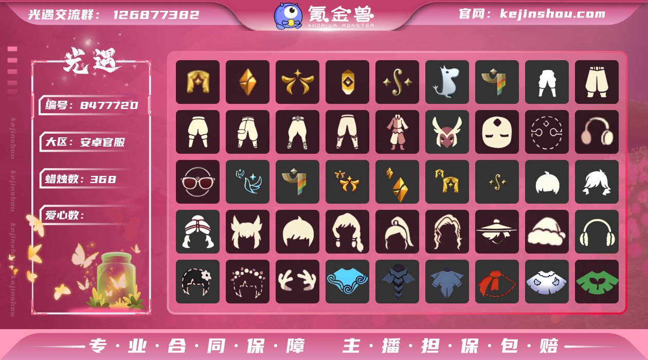 8081 区服:安卓 翼数量:109 资源:蜡烛368 爱心28 红21 已毕业地图:雨林 霞谷 毕业季节:表演季 破晓季 欧若拉季 追忆季 二重奏季 姆明季 彩染季 半青鸟季 热门礼包:巫师帽 金鳞耳坠 热门裤子:遥鲲长袍 绑带舞服 高领舞服 无袖灯笼裤 双边系带裤 广袖长袍 月华霓裳服饰 阔腿牛仔裤 玉兔拖鞋 白棉靴子 长靴 白棉裤 毛靴棉裤 搓澡巾 灯笼裤 紧身棉裤 工装裤 连体衣 武士裤 击剑连体服 过膝长袍 小丑睡衣 长袍 热门面具:矮人面具 黄眉企鹅面具 辉光羚羊面具 祥兔面具 蝴蝶花瓣面具 黑脸 热门装饰:白框墨镜 蔚蓝眼镜 星星墨镜 披肩 条纹飘带围巾 姆明尾巴 红耳机 金鳞耳坠 单边耳坠 日光耳环 满月耳坠 热门发型:小揪揪 小麻花 狮子头 爆炸头 雨妈 卡卡 平菇 蝴蝶结发型 公主头 粗辫 书虫 总裁头 正太 高马尾 郡主 花环 虚荣 平顶帽 白枭 猫猫头 冥龙 遥鲲发辫 王水母头 圆环发辫 留辫蘑菇 报童帽 凌乱发型 布巾发型 丸子盘发 史力奇发型 樱花头 马蹄莲长发 大耳狗发型 月华霓裳发型 巫师帽 猫耳发型 女巫头 圣诞帽 热门发饰:双羽发饰 蝴蝶结发饰 姆明耳朵 黄蝴蝶结发饰 姆明花环 花环 珊瑚发饰 音符发饰 小红花 比翼发饰 热门斗篷:白斗 二级白斗 兰花斗 荧蓝斗 红金斗 白金斗 黑金斗 蔚紫斗 羽翼斗 水手大衣 燕尾斗 单边围巾 冥龙斗 水母斗 幼鲲斗 双翼遥鲲斗 透明蝶翼 披肩斗 二重奏毕业斗 史力奇斗 飘带斗 彩染季毕业斗 花羽斗 郁金香斗 马蹄莲斗 绿芽斗 海浪斗 鱼纹斗 彩虹斗 暗彩斗 蝙蝠斗 枯叶斗 圣诞斗 热门背饰:钢琴 红吉他 高音钢琴 电吉他 冥龙号角 雨伞 红色大伞 小铲子 扇子 星星灯 鲲灯 史力奇帐篷 夏日帐篷 派对围栏 女巫茶桌 圣诞椅子 雪人桶 姆明公仔 生日彩旗 派对气球 双色坐垫 蝴蝶喷泉 合奏挂画 毕业三角钢琴 姆明挂画
