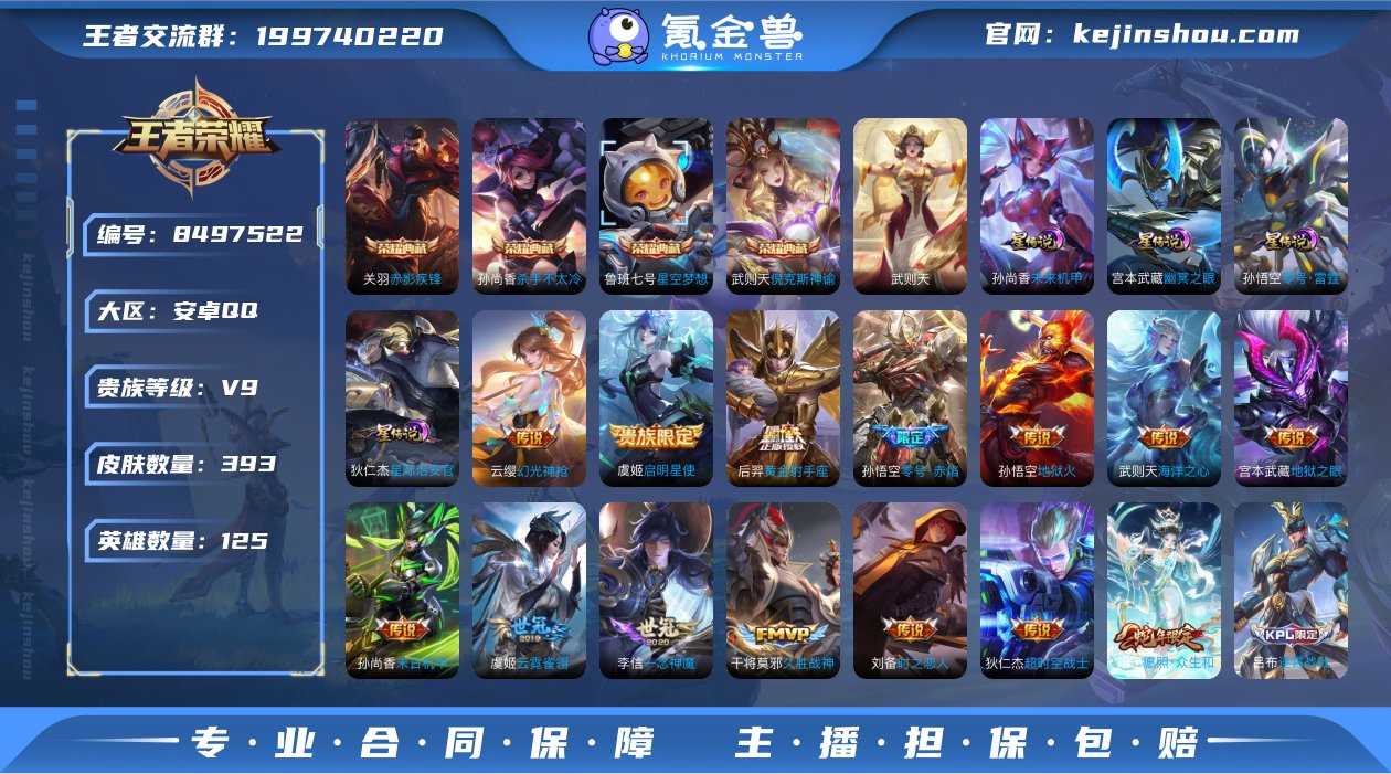 P-VM2208 安卓QQ V9 393皮 5典藏4星元 124限定18传说 6按键1天幕 发育路42段 对抗路29段 16印记 224亲密玫瑰 290皮肤碎片 营地号:448261586 【荣耀典藏】赤影疾锋,武则天,倪克斯神谕,星空梦想,杀手不太冷,【星元皮肤】幽冥之眼,未来机甲,零号雷霆,星际治安官,【热门限定】愿照·众生和,至尊宝,玄武志,龙胆,零号·赤焰,时雨天司,御风骁将,傲雪梅枪,天狼狩猎者,天狼溯光者,寅虎·瑞焰,逐梦之影,辉光之辰,太华,暗影游猎,启明星使,逐霄战戟,【限定传说】拒霜思,猫狗日记男,久胜战神,一念神魔,猫狗日记女,电玩小子,孙行者,蓝屏警告,地狱火,地狱之眼,苍穹之光,暗夜猫娘,时之恋人男,时之恋人女,诗语江南,龙鼓争鸣,修罗,龙骑士,未来纪元,神迹守卫,云霓雀翎,黄金射手座,天秀·音浪,天秀·启明,黄金分割率,超时空战士,乒乒小将,魅语,晚萤,海洋之心,千年之狐,末日机甲男,末日机甲女,无限星赏官,真我赫兹百里守约,原初探秘者,原初追逐者,黎明之约,暗隐猎兽者,水晶猎龙者,金属风暴,地狱岩魂,特工魅影,曙光守护者,白龙吟,幻光神枪,圣诞恋歌,青蛇,白蛇,舞动绿茵,逐浪之夏,心灵战警,紫霞仙子,功夫厨神,心灵骇客,狮舞东方,幽灵船长,乘风破浪,圣诞狂欢,星夜王子,永昼,节奏热浪,天才门将,绅士熊喵,暗夜贵公子,偶像歌手,街头霸王,箭羽风息,暗渊魔法,乐园奇幻夜,月团寄思,无畏之灵·狰,摇滚巨星,缤纷独角兽,鬼剑武藏,朔望之晖,德古拉伯爵,赤莲之焰,猎兽之王,云间偶戏,死神来了,冰冠公主,花好人间,炼金王,凯尔特女王,饕餮,烛龙,重明,穷奇,御狮,御旌,御銮,朔风刀,混沌棋,疑决卦,万华元夜,拳王,女仆咖啡,霸王丸,敏锐之力,丁香结,