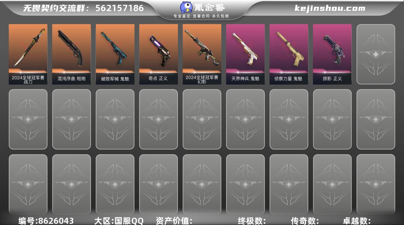 【9.7w库存23冠军套.24冠军套.25冠军套.猫猫套.仙女棒.黑波之刃.17狂徒6幻影】YXy5608【无二次】【因赛季更新游戏段付以上号为准!】 【套装】:2025全球冠军赛套装,2024全球冠军赛套装,2023全球冠军赛套装,艾沃莉的梦之翼套装,末日泡泡套装,RGX 11z Pro//3.0套装,奇点//2.0套装,回火礼包:奇点套装,无畏启程套装 【英雄】:幻棱,炼狱,维斯,暮蝶,钛狐,壹决,铁臂,捷风,雷兹,幽影,不死鸟,贤者,猎枭,蝰蛇,零,芮娜,奇乐,尚勃勒,霓虹,斯凯,夜露,星礈,K/O,海神,盖可,黑梦,钢锁 【近战武器】:近战武器-2025全球冠军赛 蝴蝶刀,近战武器-2024全球冠军赛 战刀,近战武器-2023全球冠军赛 苦无,近战武器-碎心裂刃,近战武器-泡泡电锯,近战武器-奇点//2.0 蝴蝶刀,近战武器-紫金爪刀,近战武器-RGX 11z Pro//3.0 爪刀,近战武器-黑波之刃,近战武器-艾沃莉的魔法棒,近战武器-流星兵团 短剑,近战武器-超能偶像 应援棒,近战武器-超限闪存 匕首,近战武器-合金战车 军刀,近战武器-沙尘幻旅 匕首,近战武器-天玄刀,近战武器-星际猎兵 短剑 【狂徒】:狂徒-艾沃莉的梦之翼,狂徒-超时空卫队,狂徒-2025全球冠军赛,狂徒-2023全球冠军赛,狂徒-归零者,狂徒-洪荒怒焰,狂徒-混沌序曲,狂徒-奇点//2.0,狂徒-全息波普//2.0,狂徒-塑水宗,狂徒-偃月苍龙,狂徒-多弥尔的复仇,狂徒-掠影,狂徒-盖亚的复仇,狂徒-海洋之星,狂徒-起源,狂徒-日冕雄师,狂徒-超能偶像,狂徒-流星兵团,狂徒-沙尘幻旅 【幻影】:幻影-2024全球冠军赛,幻影-奇点,幻影-千灵华绽,幻影-末日泡泡,幻影-天界神兵//2.0,幻影-侦察力量,幻影-超限闪存,幻影-合金战车,幻影-聚合之力 【戍卫】:戍卫-掠影,戍卫-超能偶像,戍卫-浮光跃金,戍卫-花漾粉红,戍卫-萌彩剪影,戍卫-战术熊与伙伴们 【獠犬】:獠犬-采蜜小...