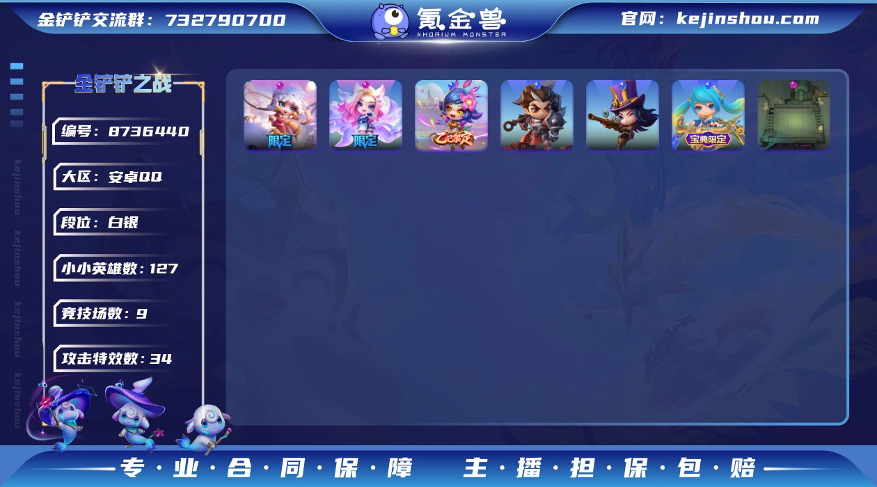 等级:Lv188, 神话级小小英雄数量:2, 小小英雄数量:127, 棋盘数量:9, 特效数量:34, 神话级小小英雄:魄罗骑士小小瑟庄妮,KDA小小阿狸。传说级棋盘:魄罗糖果岛,凛冬之爪部落。神话攻击特效:超究极微光飞弹