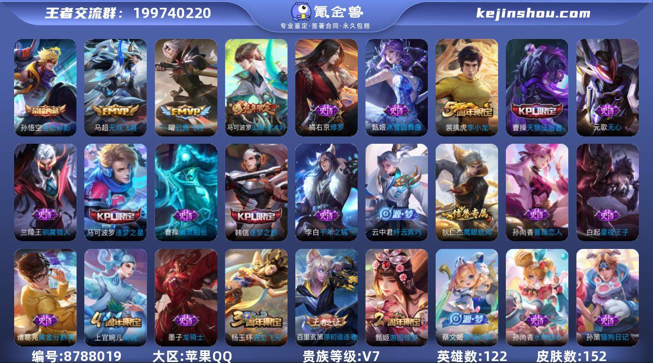 连体高质量火影和手游CF苹果QQ/ 152皮肤/ 122英雄 【1 典藏皮肤】全息碎影 孙悟空,