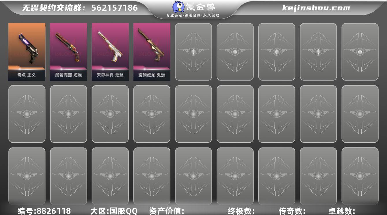 Q193087 (2024全球冠军赛套装/艾沃莉的梦之翼套装/掠影套装/上古龙炎套装/混沌序曲套装/黯夜怪谈套装/全息波普2.0套装/奇点2.0套装)无畏契约/等级210/段位未定级/英雄28/皮肤177/资产120040/已使用R点1755/剩余R点5/上古龙炎-狂徒,上古龙炎-冥驹,上古龙炎-判官,上古龙炎-狂怒,龙爪,混沌序曲-狂徒,混沌序曲-冥驹,混沌序曲-蜂刺,混沌序曲-短炮,混沌大剑,黯夜怪谈-幻影,黯夜怪谈-獠犬,黯夜怪谈-飞将,黯夜怪谈-标配,夜刃诡镰,全息波普//2.0-狂徒,全息波普//2.0-幻影,全息波普//2.0-冥驹,全息波普//2.0-标配,全息战斧,全息波普//2.0-狂徒,全息波普//2.0-幻影,全息波普//2.0-冥驹,全息波普//2.0-标配,全息战斧,2024全球冠军赛-幻影,2024全球冠军赛-战刀,艾沃莉的梦之翼-狂徒,艾沃莉的梦之翼-奥丁,艾沃莉的梦之翼-骇灵,艾沃莉的梦之翼-鬼魅,艾沃莉的魔法棒,掠影-狂徒,掠影-冥驹,掠影-戍卫,掠影-正义,影刃,星际猎兵-短剑,阿特拉斯指挥部-甩棍,日耀风暴-遗器,诡秘蛇影-军刀,神圣领域-战刀,荒土机兵-热能刀,超限闪存-匕首,超能偶像-应援棒,流星兵团-短剑,落英飞旋,堕天遗武-仪式匕首,黑波之刃,紫金爪刀,RGX-11z-Pro//3.0-爪刀,剥皮小刀,威龙之刃,塑水宗-狂徒,机动狂飙-狂徒,奇点-幻影,源能者娱乐系统-幻影,堕天遗武-狂徒,紫阙金琅-狂徒,盖亚的复仇//2.0-幻影,盖亚的复仇-狂徒,日冕雄师-狂徒,千灵华绽-冥驹,RGX-11z-Pro//3.0-莽侠,归零者-冥驹,堕天遗武-冥驹,奇点-骇灵,起源-雄鹿,VCT-x-EDG-标配,塑水宗-正义,奇点-正义,天界神兵-鬼魅