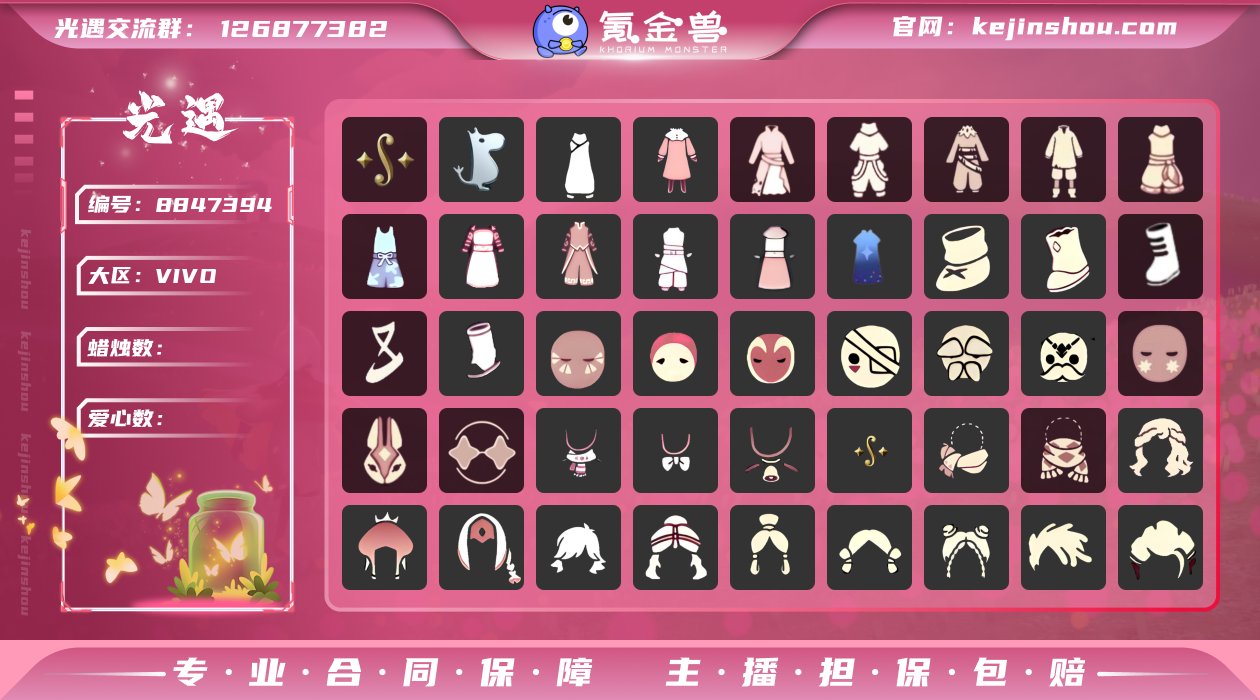 账号类型: 手机账号 季节已毕业: 二重奏季,姆明季 礼包: 围巾,茶壶 裤子: 姆明季·裤子,妮妮裙子,万圣裤,彩虹裤,绿丝裤,乞丐裤,背心短裤,遥鲲沙滩短裤,花臂抹胸裙,花臂蓝色裤,钢琴家灰色裤子,小灰裙,时尚闪耀连衣裙 鞋子: 姆明季·鞋子,布鞋,万圣鞋,芭蕾鞋,鱼嘴凉靴 面具: 海盗面具,蓝色条纹面具,忧郁脸面具,白环面具,老头面具,小胡子面具,六芒星面具,兔头 面饰: 星星眼镜 项链: 姆明季围巾,粉色蝴蝶结,铃铛,二重奏季项链,橙色围脖,围巾 发型: 史力奇发型,皇冠水母头,遥鲲长辫,渔夫马尾圆帽,花苞发型,单髻双簪发型,双环髻发型,脏辫发型,总裁发型,海蓝波浪发型,公主头,正太,书虫,高马尾,花环,虚荣,若笠,明制,樱花,猫耳,锦标赛卷毛,虎狮,背头半扎发,丸子盘发 斗篷: 蓝羽披肩斗篷,史力奇斗篷,姆明季·斗篷,绿芽,樱花斗,紫罗兰斗,双排扣斗,花瓣云肩斗 头饰: 墨蓝花发饰,黄色蝴蝶结,花环,螃蟹南瓜,爱心帽,向日葵发箍,时尚暗黑发饰 配饰: 茶壶,点火坛背饰,书架柜子,方形烛台,大铃铛乐器,手持小铃铛,小红伞,姆明季帐篷,口琴,钟,吊灯,拱门,圣诞椅,万圣椅,火炬,遥鲲泳圈,大提琴 亮点: 无翼