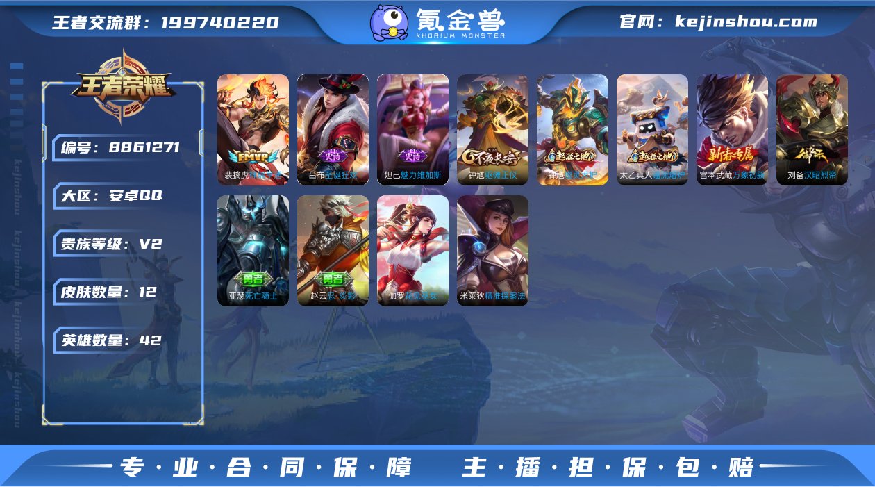 【祥瑞亨通1传说】安卓QQ-42英雄-12皮肤【传说皮肤】祥瑞亨通【史诗皮肤】魅力维加斯 圣诞狂欢【勇者皮肤】虚灵犬护 万象初新 汉昭烈帝 死亡骑士 忍·炎影 驱傩正仪 营地ID:1610015228