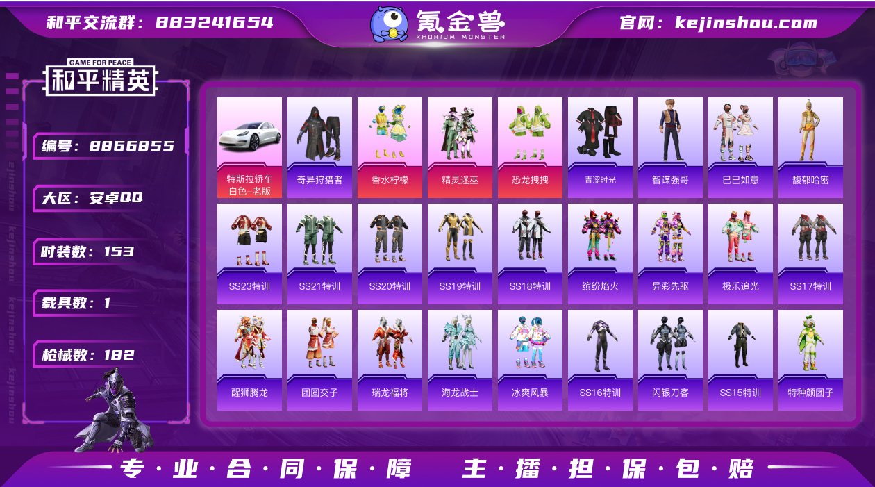 可改实名 1载具 3特效枪1满级 3粉装 153套装 182枪械 特斯拉Model3珍珠白 Kar98K-巳巳如意5级 M416-风花雪月满级 SLR-暗夜玫瑰6级 恐龙拽拽 香水柠檬 精灵迷巫 深海梦境 奇异狩猎者 王牌印记19 热力值60577 Z12345 和平精英买号永久包赔带二次营地ID:712606382