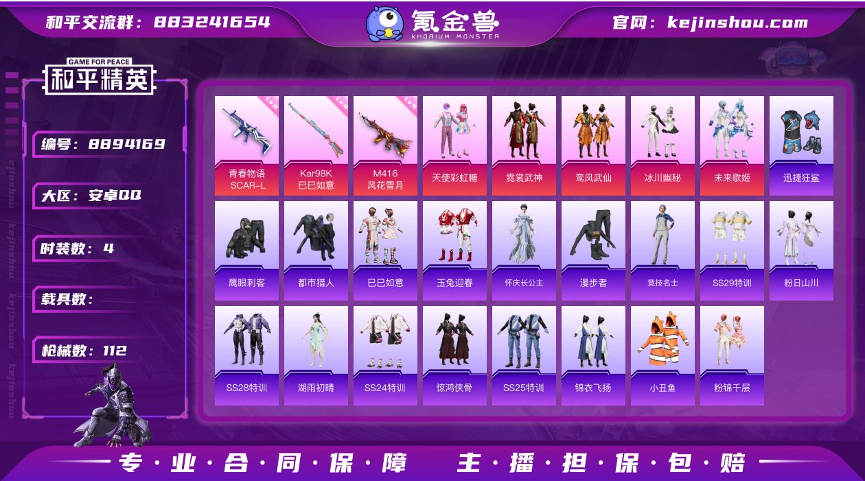 hs31855 钱包不能注销安卓Q-34095热力值 2王牌印记 历史超级王牌7星 73套装 112枪皮 【1稀有】 都市猎人 【5粉装】 天使彩虹糖 未来歌姬 霓裳武神 冰川幽秘 鸾凤武仙 【4特效枪】 Kar98K-巳巳如意 (4级) AKM-梦之光华 (4级) M416-风花雪月 (4级) SCAR-L-青春物语 (6级) 【1飞行器】 闪光银龙飞行器 【6热门】 龟仙人 鹰眼刺客 迅捷狂鲨 漫步者 AKM-奇异狩猎者 M762-奇异狩猎者 【1背包】 甜心宝贝背包 营地ID:788396176
