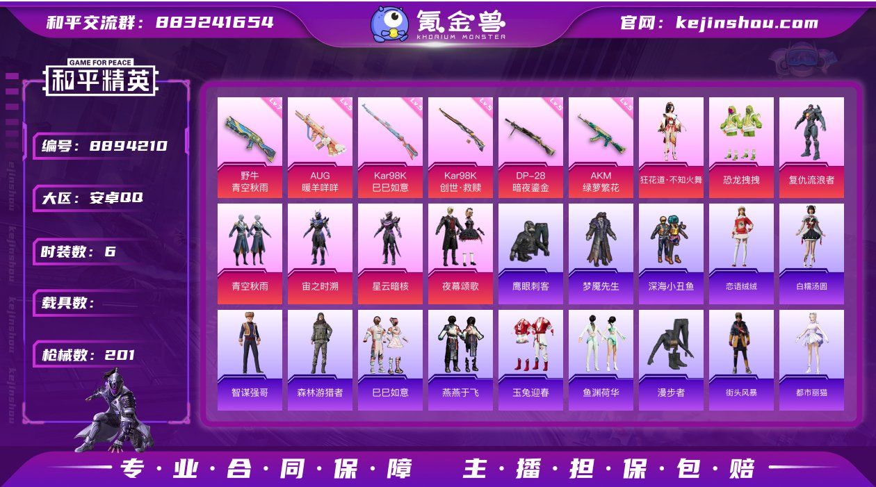 hs26002 腾讯信用分294qq钱包不能注销 安卓Q-58232热力值 7王牌印记 历史卓越王牌6星 120套装 201枪皮 【7粉装】 狂花道·不知火舞 夜幕颂歌 宙之时溯 星云暗核 青空秋雨 恐龙拽拽 复仇流浪者 【6特效枪】 AKM-绿萝繁花 (5级) Kar98K-巳巳如意 (5级) AUG-暖羊咩咩 (5级) Kar98K-创世救赎 (5级) 野牛-青空秋雨 (7级) DP-28-暗夜鎏金 (5级) 【3飞行器】 繁龙极客飞行器 花傲天飞行器 太空嘟嘟飞行器 【12热门】 Mark.06 龟仙人 雪山精英 梦魇先生 鹰眼刺客 深海小丑鱼 粉红小猪 漫步者 破蛋小黄鸡 极速红龙 英勇保护者 M762-奇异狩猎者 营地ID:916330608