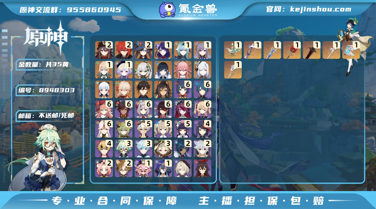 20黄,11个金色英雄:0命神里绫华,1命莫娜,0命申鹤,1命七七,0命枫原万叶,1命优菈,0命八重神子,1命迪卢克,0命刻晴,1命琴,0命埃洛伊,4个金色武器: 精1天空之翼, 精1风鹰剑, 精1若水, 精1松籁响起之时;崩铁有两命希儿等。