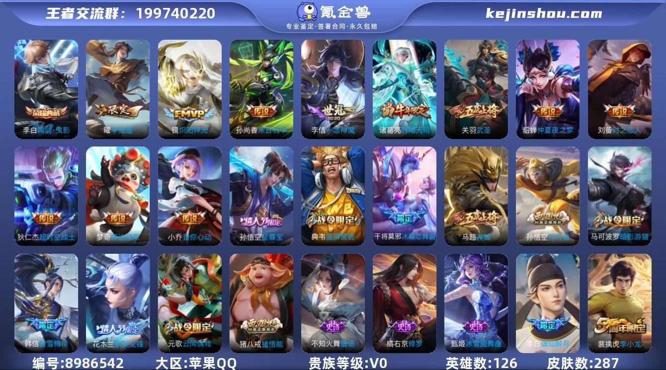 王者和平连体号/海外号/王者V7历史50强小国标万战孙悟空猴子