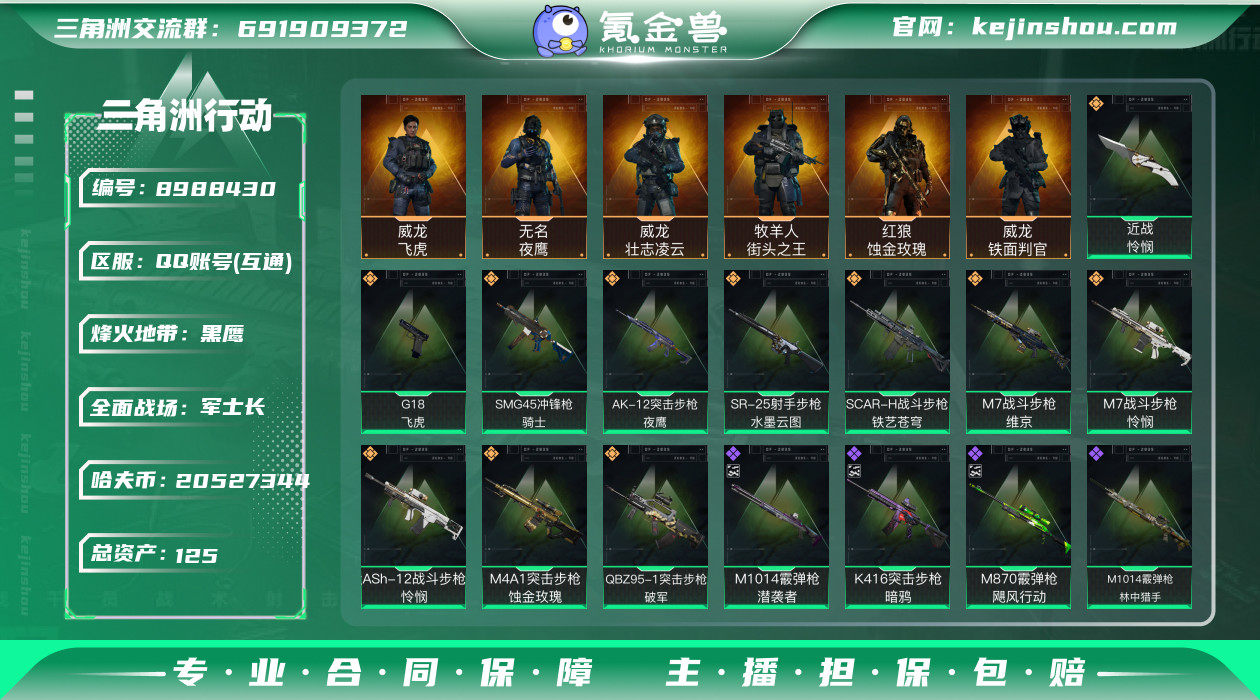 hf3598 怜悯全套+s2s3赛季通行证+烽火等级60 部门等级全3级,特勤处就差仓库没升满, s3赛季巅峰战神 红狼 吴彦祖 赛季通行证永久包赔,有非绑定的非洲之心,还有几个六套,2000万现金,到手不管猛攻还是做鼠鼠都可以,有一条绿色的3S龙。