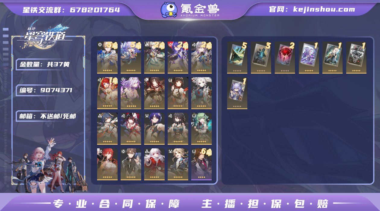 退游了不想玩了,练度比较高,可以看看;2+1黄泉,2+1流萤,1命提宝,