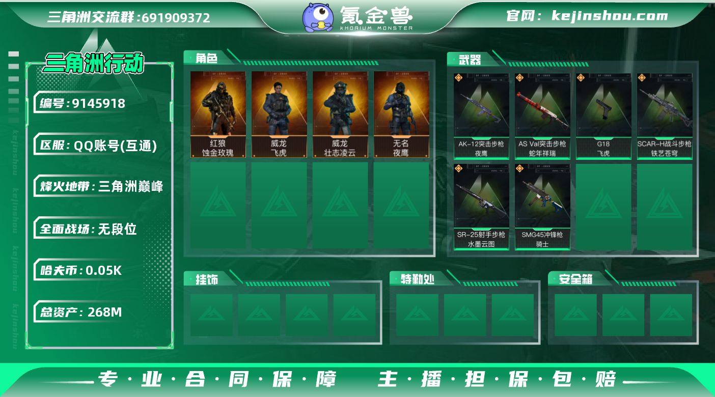 hf5496 资产268.5m纯币50m 带饰金玫瑰+飞虎全套 s3s4通行证 特勤等级和部门等级全满
