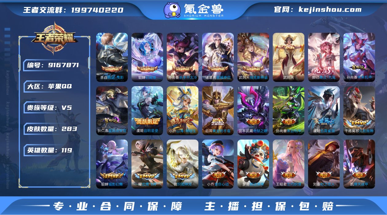 LH0074信用分低禁言-可二次-V5-119英雄-283皮肤-5典藏-1无双-2星传说-29传说-91史诗 【荣耀典藏】星域神启-诸葛亮 鸣剑·曳影-李白 幻阙歌-貂蝉 杀手不太冷-孙尚香 倪克斯神谕-武则天 【无双】青丘·九尾-妲己 【传说】超时空战士-狄仁杰 末日机甲-孙尚香 云霓雀翎-虞姬 乞巧织情-王昭君 灼幽烈阳-东皇太一 记忆之芯-公孙离 黄金射手座-后羿 地狱之眼-宫本武藏 猫影幻舞-貂蝉 音你心动-小乔 云鹰飞将-曜 久胜战神-干将莫邪 音你闪耀-孙尚香 绛天战甲-铠 启明星使-虞姬 胖达荣荣-梦奇 时之恋人-刘备 炽阳神光-镜 【传说限定】寅虎·瑞焰-鲁班七号 异界灵契-孙尚香 画中仙-干将莫邪 齐天大圣-孙悟空 鹤羽星尊-诸葛亮 无限倾心-虞姬 燃星之曲-花木兰 炽翼辉光-伽罗 山海·琳琅生-小乔 浮生妄-夏洛特 妄想实况-马可波罗 【史诗】苍穹之光-项羽 黄金分割率-诸葛亮 逐浪之夏-李元芳 奇遇舞章-艾琳 暗夜猫娘-阿轲 猫狗日记-孙策 魅语-不知火舞 遇见神鹿-瑶 功夫厨神-程咬金 圣诞恋歌-貂蝉 德古拉伯爵-刘邦 鬼剑武藏-宫本武藏 暗隐猎兽者-兰陵王 魔术师-狄仁杰 乱世虎臣-张飞 完美假期-米莱狄 赏金猎手-澜 银翎春语-杨玉环 时之恋人-孙尚香 鹰眼统帅-狄仁杰 幽灵船长-曹操 青蛇-小乔 顽趣-梦奇 心灵战警-亚瑟 摇滚巨星-嬴政 女仆咖啡-妲己 千年之狐-李白 未来纪元-赵云 舞动绿茵-蔡文姬 箭羽风息-伽罗 永昼-夏洛特 水晶猎龙者-花木兰 冰雪圆舞曲-甄姬 皇家上将-赵云 龙鼓争鸣-蒙犽 驭风魔法-戈娅 紫霞仙子-露娜 暗渊魔法-司马懿 暗夜贵公子-嬴政 电玩小子-鲁班七号 魅力维加斯-妲己 猫狗日记-大乔 特工魅影-百里守约 地狱岩魂-廉颇 无限星赏官-公孙离 诗语江南-西施 圣诞狂欢-吕布 心灵骇客-安琪拉 月团寄思-沈梦溪 金属风暴-墨子 曙光守护者-铠 乐园奇幻夜-钟馗 节奏热浪-阿轲 水果甜心-孙尚香 天才门将-刘禅 乘风破浪-夏侯惇 绅士熊喵-刘禅 偶像歌手-王昭君 龙骑士-墨子 修罗-橘右京 白蛇-大乔