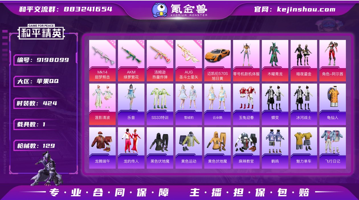 可实名苹果Q-绝世印记地铁满天赋高资源-5粉4特效枪1载具 红眼罩螳螂108个套装129个枪皮肤 实名: 可修改 时装数: 424 载具数: 1 枪械数: 129 战备数: 98 热门装扮: 木曜青龙,零号机款机体服,暗夜鎏金,阿尔茜,莲影清波 载具: 迈凯伦570S(旭日黄) 稀有枪皮: AKM绿萝繁花,AUG-圣斗士星矢,MK14-甜梦熊击,汤姆逊-热量炸弹