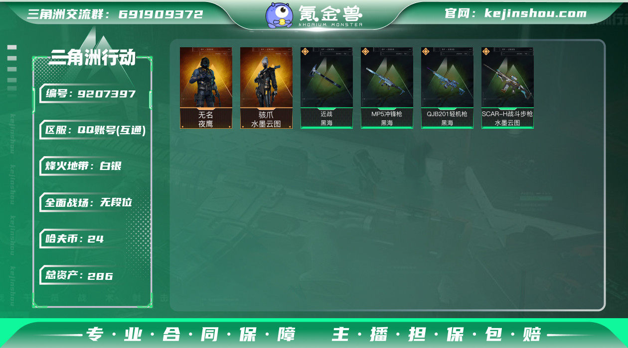 hf5680 总资产286m+纯币24m+水墨云图骇爪全部套+黑海全套+s4赛季通行证+烽火等级60 特勤部门等级高 永久包赔