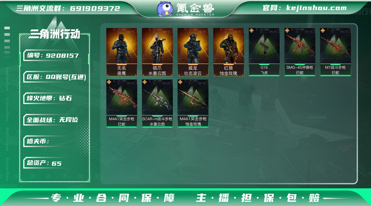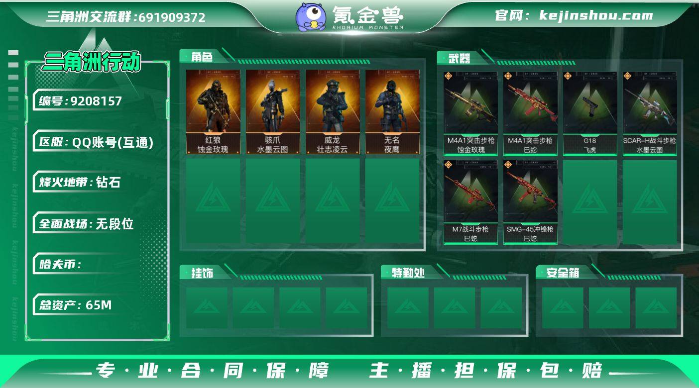 hf5683 总资产65m+饰金玫瑰红狼全套+水墨云图骇爪全部套+飞虎全套+s3s4赛季通行证+烽火i等级60 特勤部门等级高 永久包赔