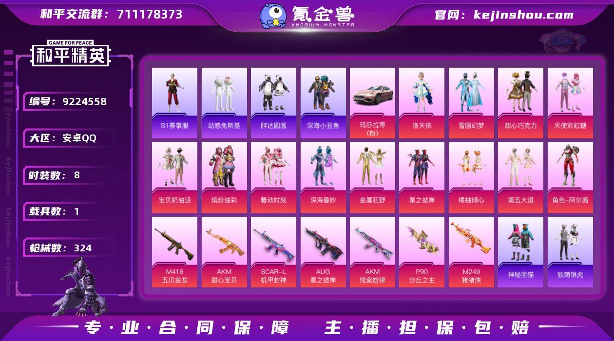 【和平精英】26粉装,15特效枪,13载具,历史最高段位:超级王牌3星 王牌印记3次 热力值:149992,268套装,343枪械,578装备,188战备;套装:幽焰骑士-维塔,套装-梦幻火箭,套装-金属狂野,套装-室女星神,角色-洛天依,套装-星之彼岸,套装-筑梦精灵,套装-沙场疾风,套装-暗夜鎏金,角色-呆萌星弥,套装-心之回忆,套装-瑰丽时代,套装-飒粉甜心,套装-未来歌姬,角色-紫钛骑兵,角色-圣堂之誓,套装-暖暖奶龙,角色-烟云彩露,角色-星梦奇缘,套装-创世·救赎,角色-狂花道·不知火舞,角色-千金淑猫,角色-绯穹魔姬,角色-霁蓝缠春,角色-女娲灵识,角色-冷漠罗丽,角色-震天雷神,套装-蓝色运动,套装-白色伏地魔,套装-黑色伏地魔,套装-骑行爱好者,套装-竞技名士,套装-酒红色名流,套装-长空猛禽,套装-竞技勇士朋克,套装-海岛探路者,套装-灼焰舞者,套装-战地菁英,套装-特殊使命,套装-灰色格斗者,套装-活力之心,套装-甜蜜告白,套装-春日漫步,套装-滨海假日,套装-完美偶像,套装-蓝彩潮人,套装-酷萌兔限定,套装-魅力单车,套装-绮丽涂鸦,套装-坚韧舞者,套装-竞技达人朋克,套装-夜莺强袭者,套装-野性战心,套装-野性战魂,套装-热血青春,套装-潮流炫酷,套装-沙漠兵团,套装-SS2特训,套装-雪山精英,套装-幻世战舞者,套装-甜蜜熊情侣,套装-缤纷果语,套装-龙魂突击队,套装-冰川特警,套装-格斗先锋,套装-麻辣教官,套装-SS4特训,套装-疯狂小兔子,套装-SS5特训,套装-金鼠迎春,套装-北国孤狼,套装-SS6特训,套装-跃动心情,套装-SS7特训,套装-鹤鸣,套装-霓虹街区,套装-SS10特训,套装-SS8特训,套装-大橘为重,套装-萌黄之夏,套装-夏日音浪,套装-SS9特训,套装-探宝勇士,套装-牛气满满,套装-SS11特训,套装-特种颜团子,套装-战术大师,套装-狙击之神,套装-SS12特训,套装...