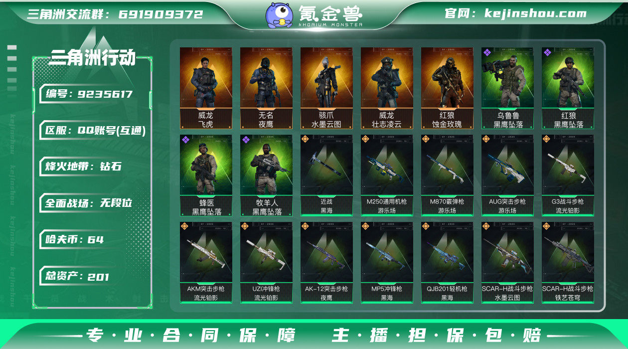 hf5758 总资产201m+纯币64m+饰金玫瑰红狼全套+水墨云图亥爪全套+黑海全套+飞虎+黑鹰坠落全套+游乐场全套+流光伯影全套+s3s4s5赛季通行证+烽火等级60 特勤部门等级高 永久包赔