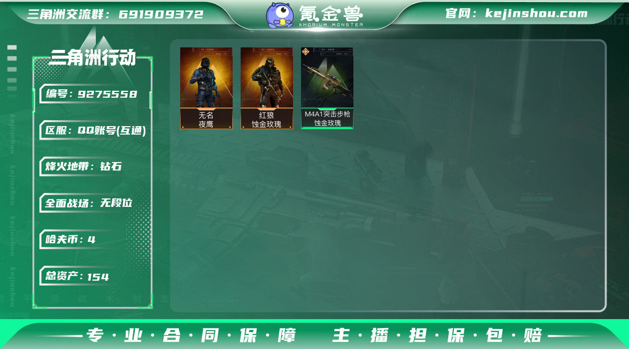 hf5865 总资产154m+纯币4m+仓库大红多+饰金玫瑰红狼全套+s4赛季通行证+烽火等级60 特勤等级高 永久包赔