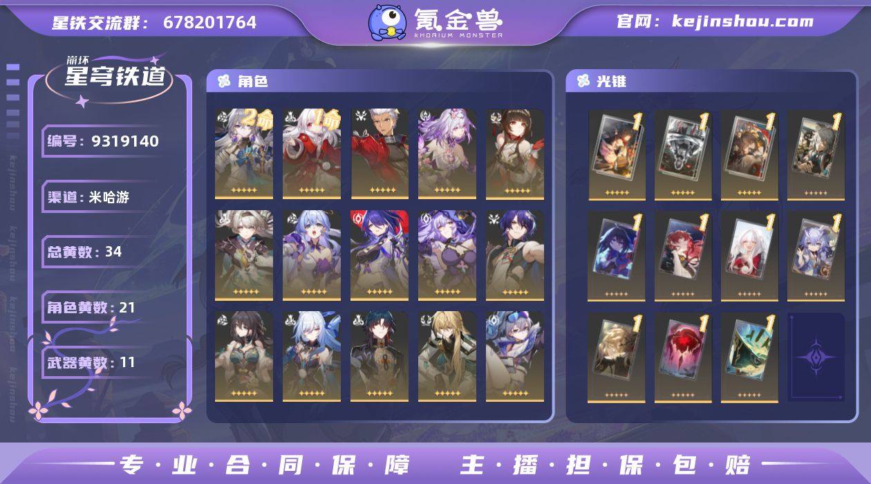 总黄数: 34 2命金色角色: 2命布洛妮娅 1命金色角色: 1命克拉拉 0命金色角色: 0命希儿,0命景元,0命彦卿,0命白露,0命姬子,0命杰帕德,0命银狼,0命罗刹,0命刃,0命镜流,0命阮•梅,0命真理医生,0命黑天鹅,0命黄泉,0命知更鸟,0命流萤,0命灵砂,0命遐蝶,0命Archer 精1武器: 精1拂晓之前,精1于夜色中,精1时节不居,精1如泥酣眠,精1无可取代的东西,精1银河铁道之夜,精1记一位星神的陨落,精1星海巡航,精1镜中故我,精1行于流逝的岸,精1唯有香如故