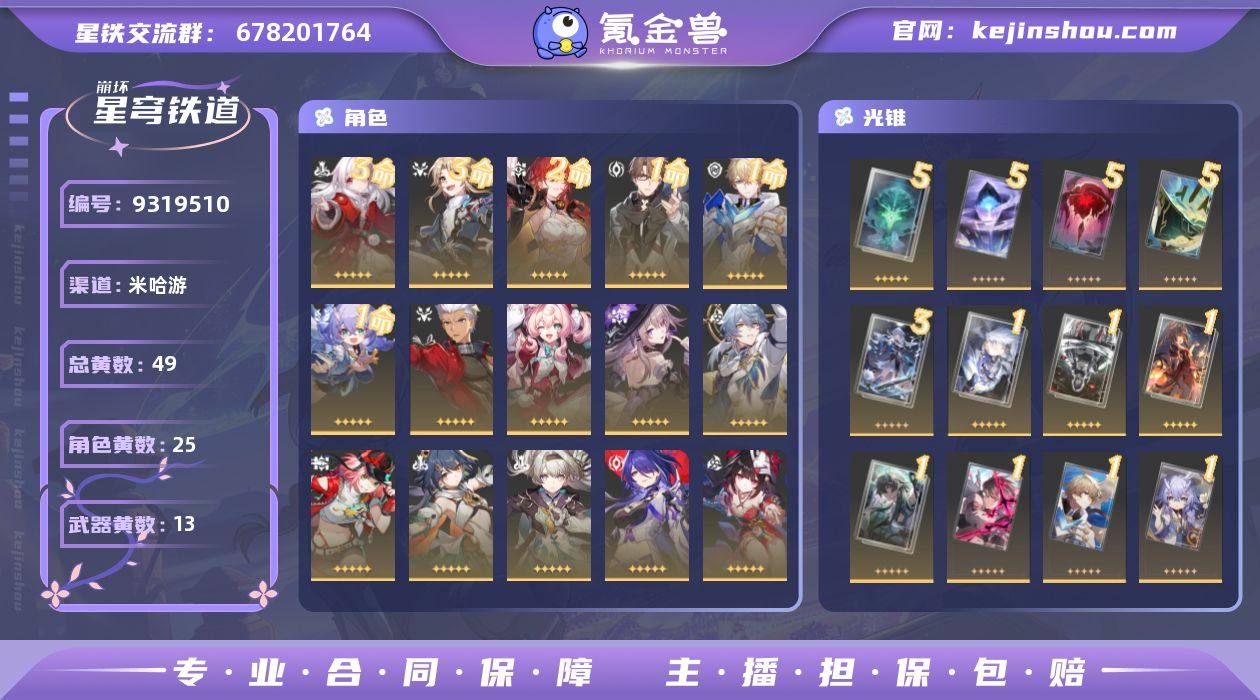 总黄数: 49 3命金色角色: 3命彦卿,3命克拉拉 2命金色角色: 2命姬子 1命金色角色: 1命白露,1命瓦尔特,1命杰帕德 0命金色角色: 0命希儿,0命布洛妮娅,0命银狼,0命卡芙卡,0命丹恒•饮月,0命符玄,0命镜流,0命藿藿,0命阮•梅,0命真理医生,0命花火,0命黄泉,0命流萤,0命云璃,0命乱破,0命星期日,0命大黑塔,0命风堇,0命Archer 精5武器: 精5记忆的质料,精5记一位星神的陨落,精5星海巡航,精5不息的演算 精3武器: 精3此身为剑 精1武器: 精1时节不居,精1如泥酣眠,精1制胜的瞬间,精1以世界之名,精1比阳光更明亮的,精1游戏尘寰,精1行于流逝的岸,精1回到大地的飞行