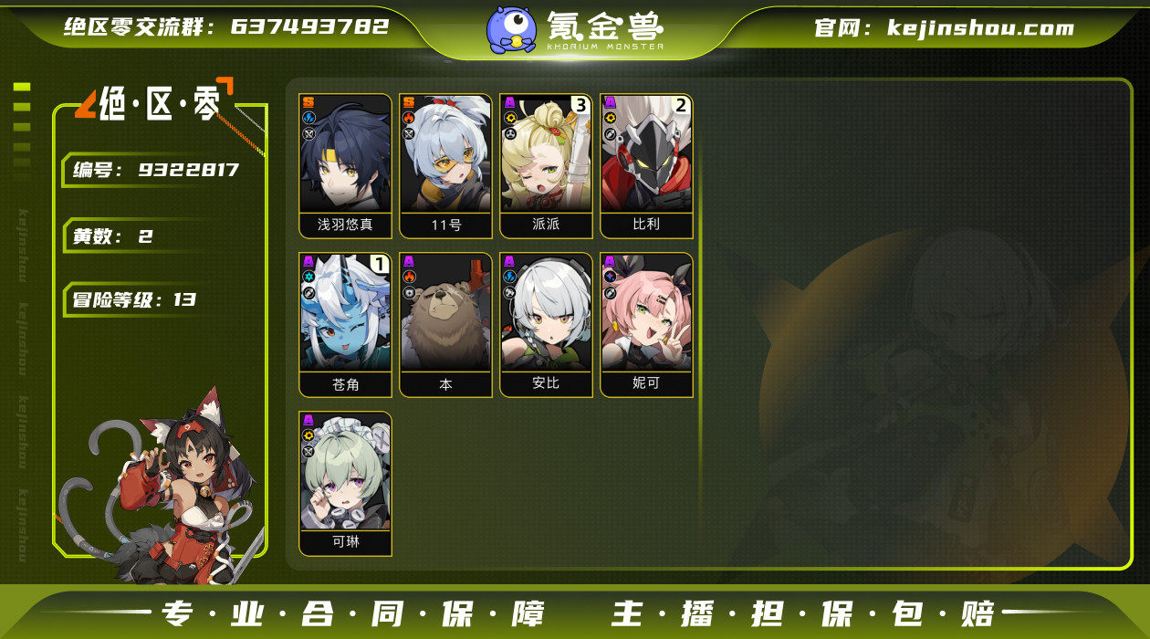 邮箱: 未绑定 总黄数: 2 拥有S级代理人: 「11号」,浅羽悠真 亮点: 号里有很多资源