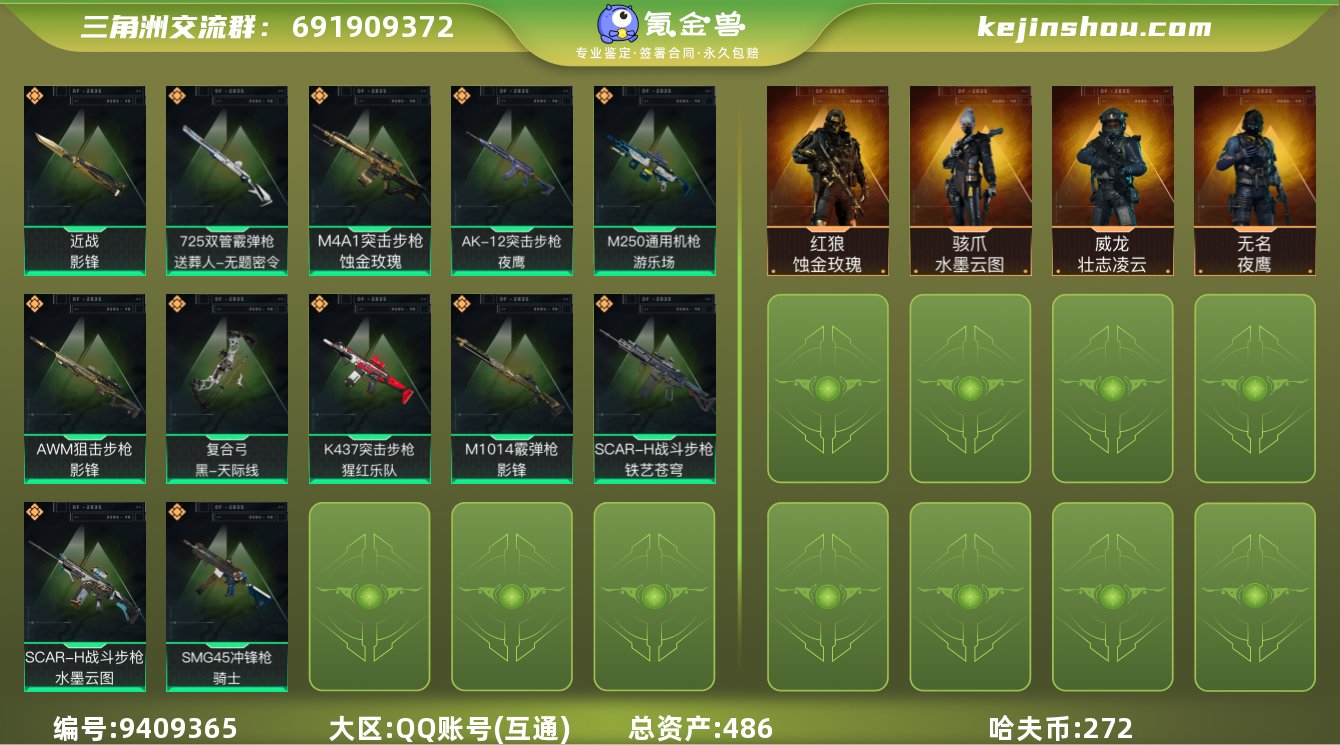 hf6149 总资产486m+纯币238m+s5赛季3x3安全箱+饰金玫瑰红狼全套+水墨云图骇爪全套+影峰全套+s3s4s5赛季通行证+烽火等级60 特勤部门等级高 永久包赔