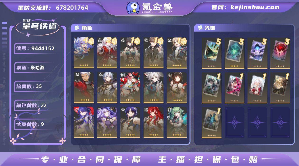 总黄数: 35 4命金色角色: 4命白露 2命金色角色: 2命克拉拉 1命金色角色: 1命彦卿,1命瓦尔特,1命阮•梅 0命金色角色: 0命姬子,0命布洛妮娅,0命银狼,0命刃,0命丹恒•饮月,0命符玄,0命镜流,0命藿藿,0命银枝,0命真理医生,0命黑天鹅,0命黄泉,0命飞霄,0命灵砂,0命乱破,0命白厄,0命Archer 精5武器: 精5星海巡航 精3武器: 精3记忆的质料,精3记一位星神的陨落,精3不息的演算 精1武器: 精1如泥酣眠,精1以世界之名,精1无可取代的东西,精1比阳光更明亮的,精1孤独的疗愈