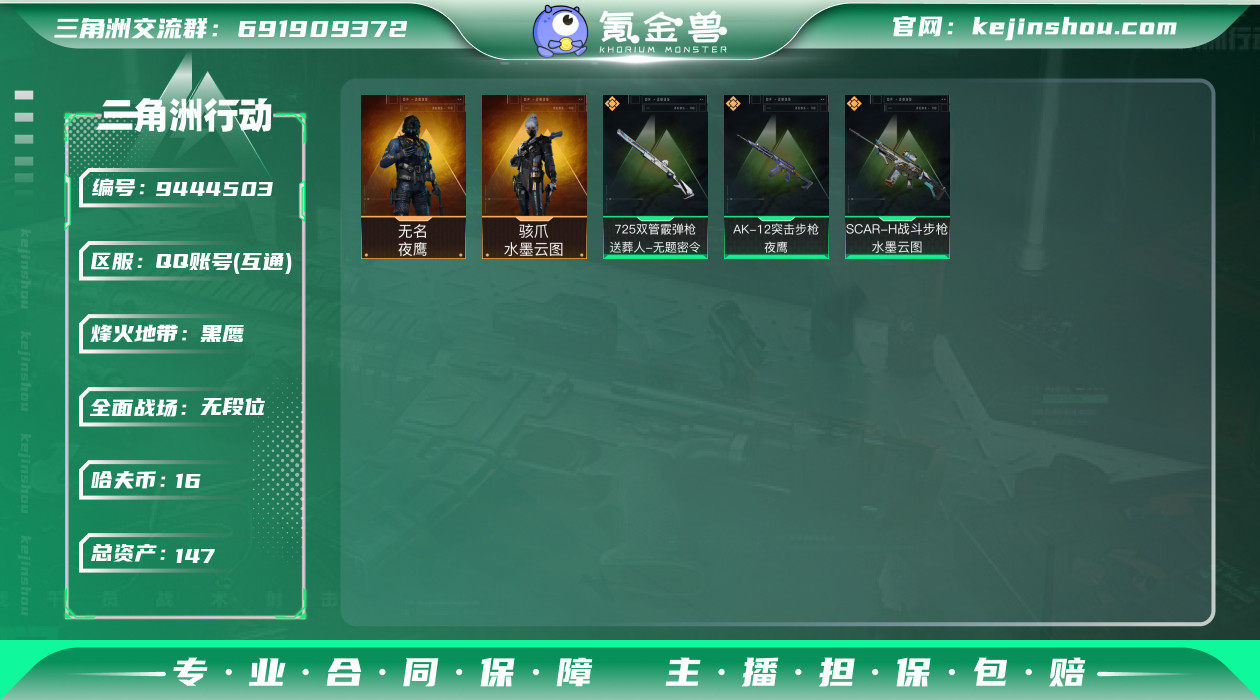 hf6254 总资产147m+纯币16m+水墨云图骇爪全套+s4s5赛季通行证+烽火等级 特勤等级可以 永久包赔