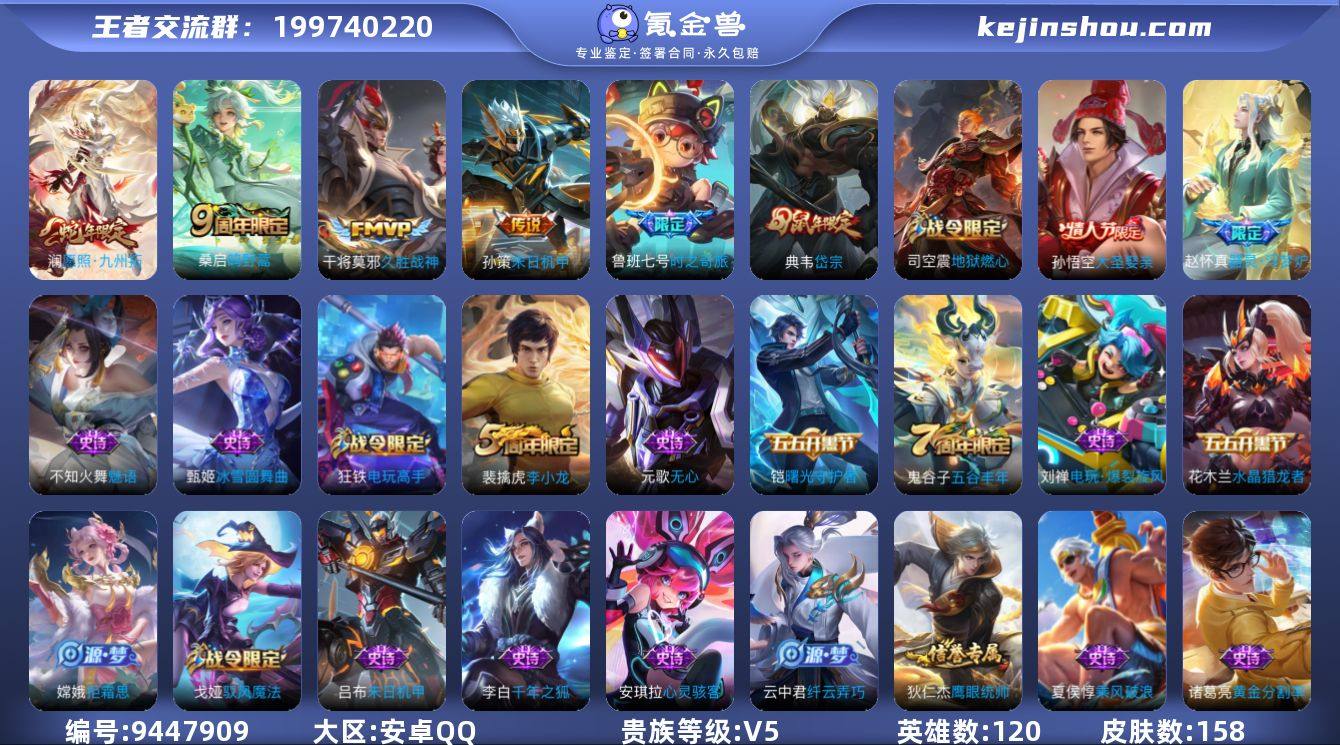 -可二次-V5-120英雄-158皮肤-5传说-46史诗 【传说】鸣野蒿-桑启 末日机甲-孙策 久胜战神-干将莫邪 愿照·九州拓-澜 【传说限定】时之奇旅-鲁班七号 【史诗】魅力维加斯-妲己 黄金分割率-诸葛亮 逐浪之夏-李元芳 魅语-不知火舞 圣诞狂欢-吕布 心灵骇客-安琪拉 电玩·爆裂旋风-刘禅 圣诞恋歌-貂蝉 鬼剑武藏-宫本武藏 热力回旋-百里玄策 金属风暴-墨子 暗隐猎兽者-兰陵王 万物之道-弈星 曙光守护者-铠 鹰眼统帅-狄仁杰 顽趣-梦奇 心灵战警-亚瑟 节奏热浪-阿轲 摇滚巨星-嬴政 器灵·浮梦炉-赵怀真 水果甜心-孙尚香 千年之狐-李白 未来纪元-赵云 天才门将-刘禅 乘风破浪-夏侯惇 舞动绿茵-蔡文姬 星界战将-牛魔 水晶猎龙者-花木兰 冰雪圆舞曲-甄姬 皇家上将-赵云 荣光圣徽-蒙恬 驭风魔法-戈娅 末日机甲-吕布 【史诗限定】优雅恋人-嬴政 黎明之约-雅典娜 李小龙-裴擒虎 地狱燃心-司空震 五谷丰年-鬼谷子 岱宗-典韦 拒霜思-嫦娥 电玩高手-狂铁 大圣娶亲-孙悟空 纤云弄巧-云中君 百解令-蒙犽 无心-元歌 江河有灵-阿古朵 【勇者】科学大爆炸-项羽 决胜大满贯-曹操 探海日志-鲁班大师 救世之瞳-扁鹊 妄想特派-李元芳 金庭之子-兰陵王 雪境奇遇-西施 缤纷绘卷-张良 景韶洛都-明世隐 谧流熔炉-太乙真人 功夫炙烤-廉颇 东方不败-武则天 海盐诗旅-桑启 天穹祈灯-鬼谷子 灵野札记-张良 云中旅人-李元芳 擒涛扼浪-裴擒虎 演武夺筹-程咬金 特工战影-狂铁 聚星闪耀-钟无艳 奇妙博物学-庄周 哥特玫瑰-露娜 天使之翼-孙膑 潮玩探月行-猪八戒 雾都夜雨-干将莫邪 天穹之誓-姜子牙 少女阿狸-妲己 阴阳师-狄仁杰 秘密基地-刘禅 春野闲踪-苏烈 万华元夜-狄仁杰 大漠名商-沈梦溪 绒语心约-大乔 鲨炮海盗猫-沈梦溪 流音漫舞-艾琳 街头霸王-韩信 古海寻踪-张良 劲辣红锅-太乙真人 龙腾万里-关羽 兔女郎-花木兰 沉稳之力-孙尚香 午后时光-王昭君 铁骨偃魂-典韦 化身博士-扁鹊 乓乓大师-鲁班大师 敏锐之力-李白 拳王-达摩 黄金武士-典韦