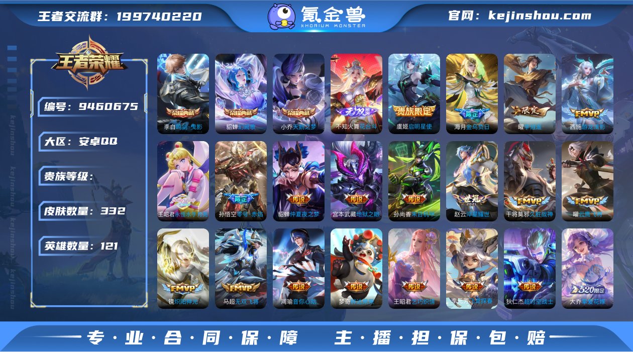安卓QQ 102段中路 1.8w大国火舞 1.7w大国海诺 数字标1奕星 1.7w数字标5王昭君 1.6w数字标6西施 小国干将莫邪 小国上官婉儿 小国嬴政 小国杨玉环 1.7w小国沈梦溪 小国海月 小国周瑜 小国嫦娥 有魔方