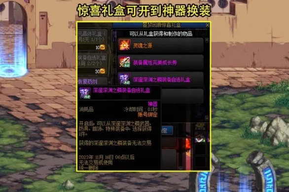对于许多玩家来说,神器换装自选礼盒的加入无疑是最令人期待的一项奖励。众所周知,神器换装是一种极为珍贵的装备,可以极大提升角色的属性和战斗力。然而,从活动的实际情况来看,要想获得神器换装自选礼盒并非易事。