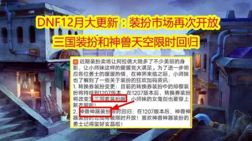 DNF12月大更新曝光!三国装扮与神兽天空限时回归,嘉年华活动再燃激情
