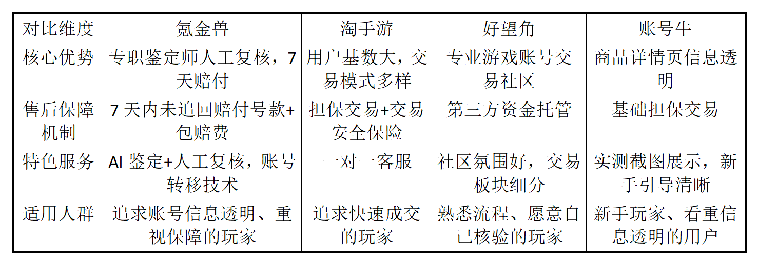 局限性:平台规模相对较小,账号库存不如大平台充足。包赔服务需要额外购买,赔付比例和条件因订单而异。